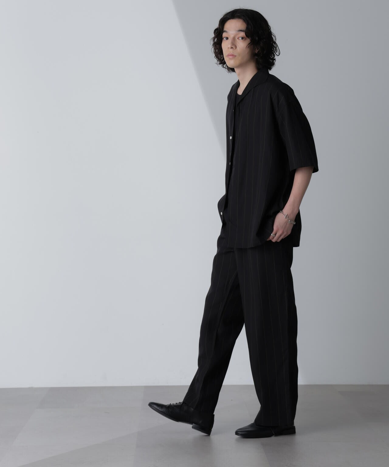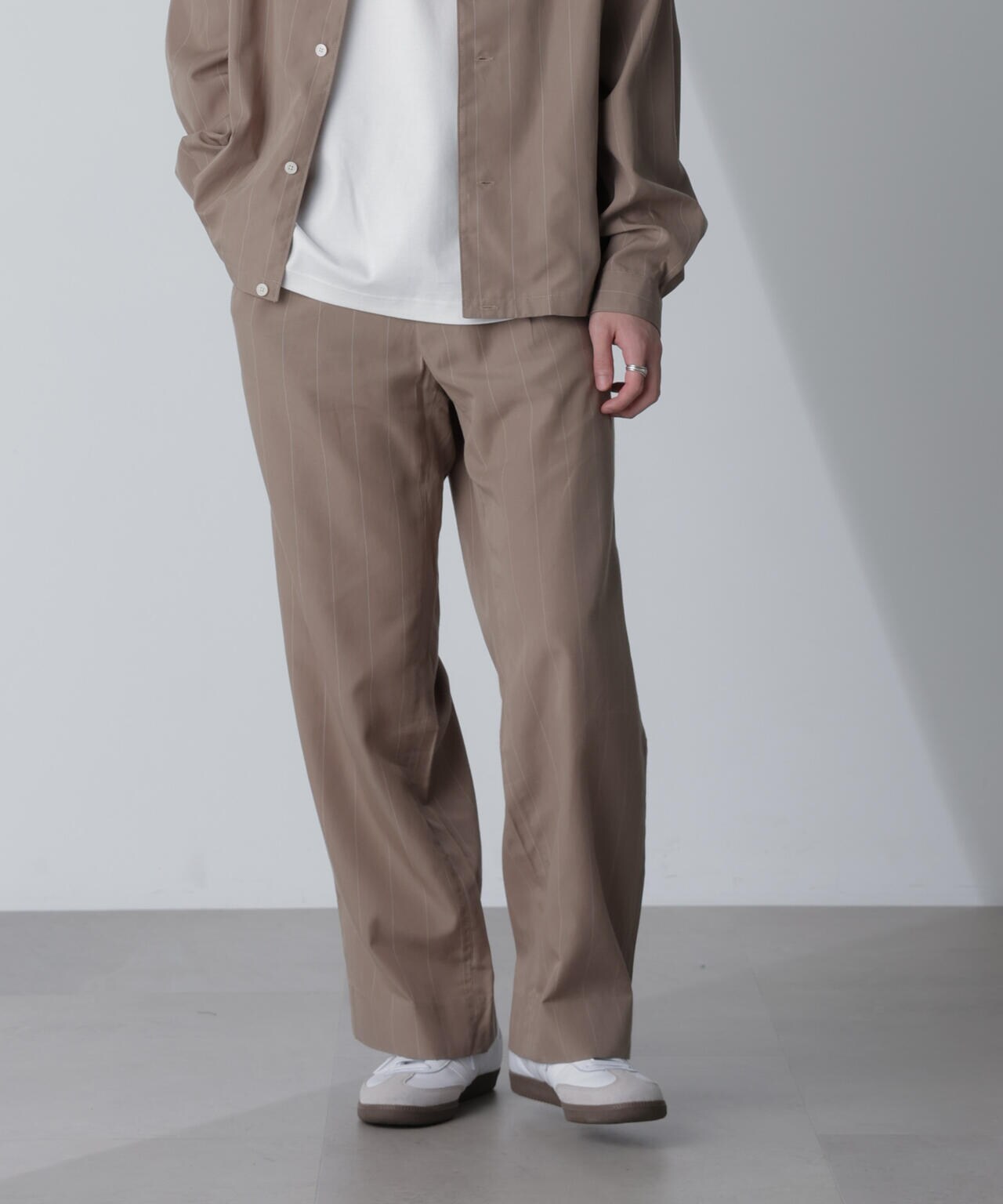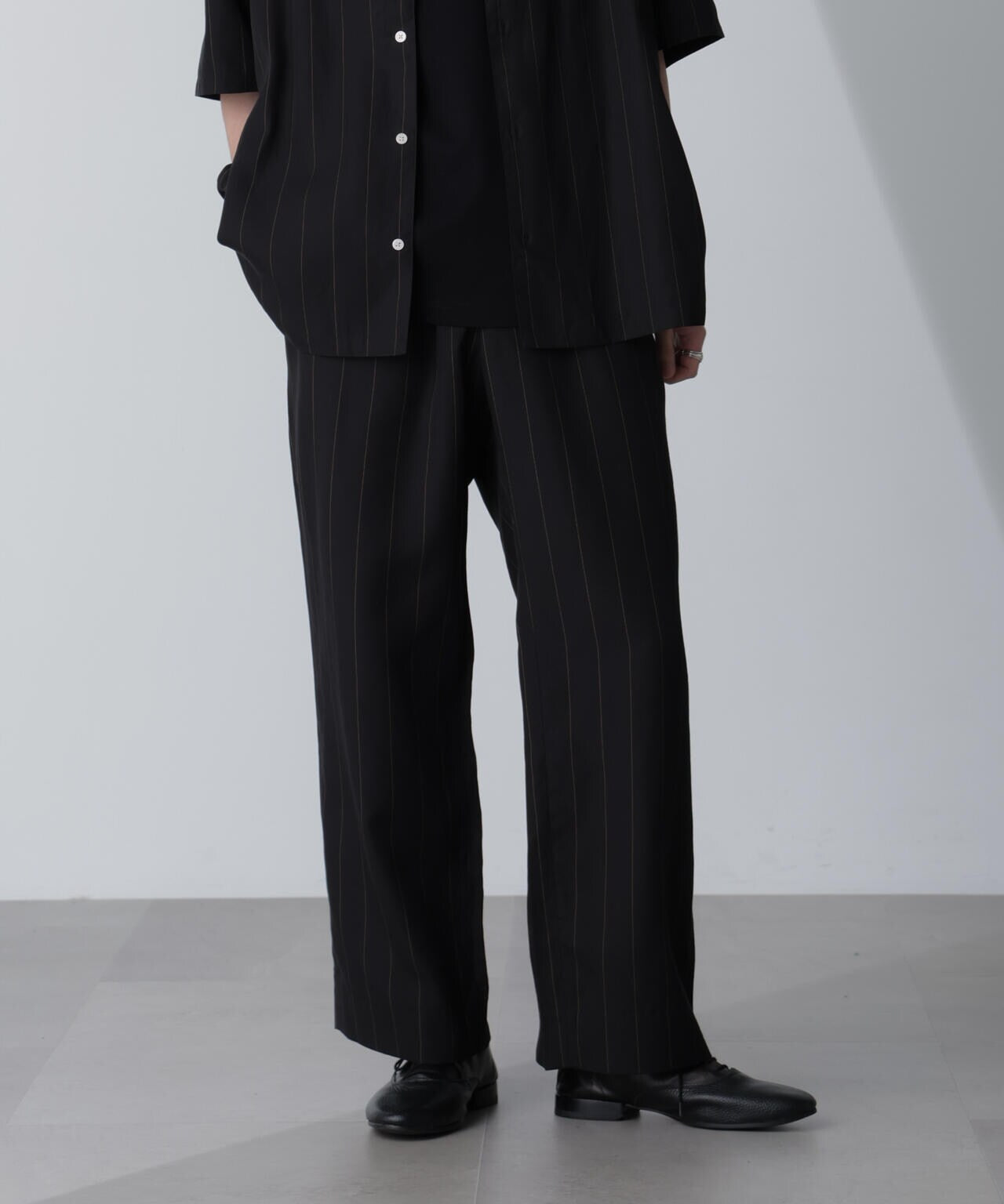 『オリジナルのピンストライプでこなれ感のでるワンタックパンツ』