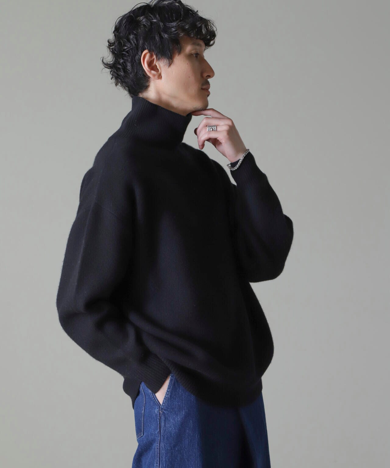 今年らしいニュートラルカラーでまとめたAQUAニットシリーズから登場のモックネックプルオーバー。厳選された糸を使用した、カシミア混のウールニット。リラックスシルエットで上品で柔らかいムードを演出。