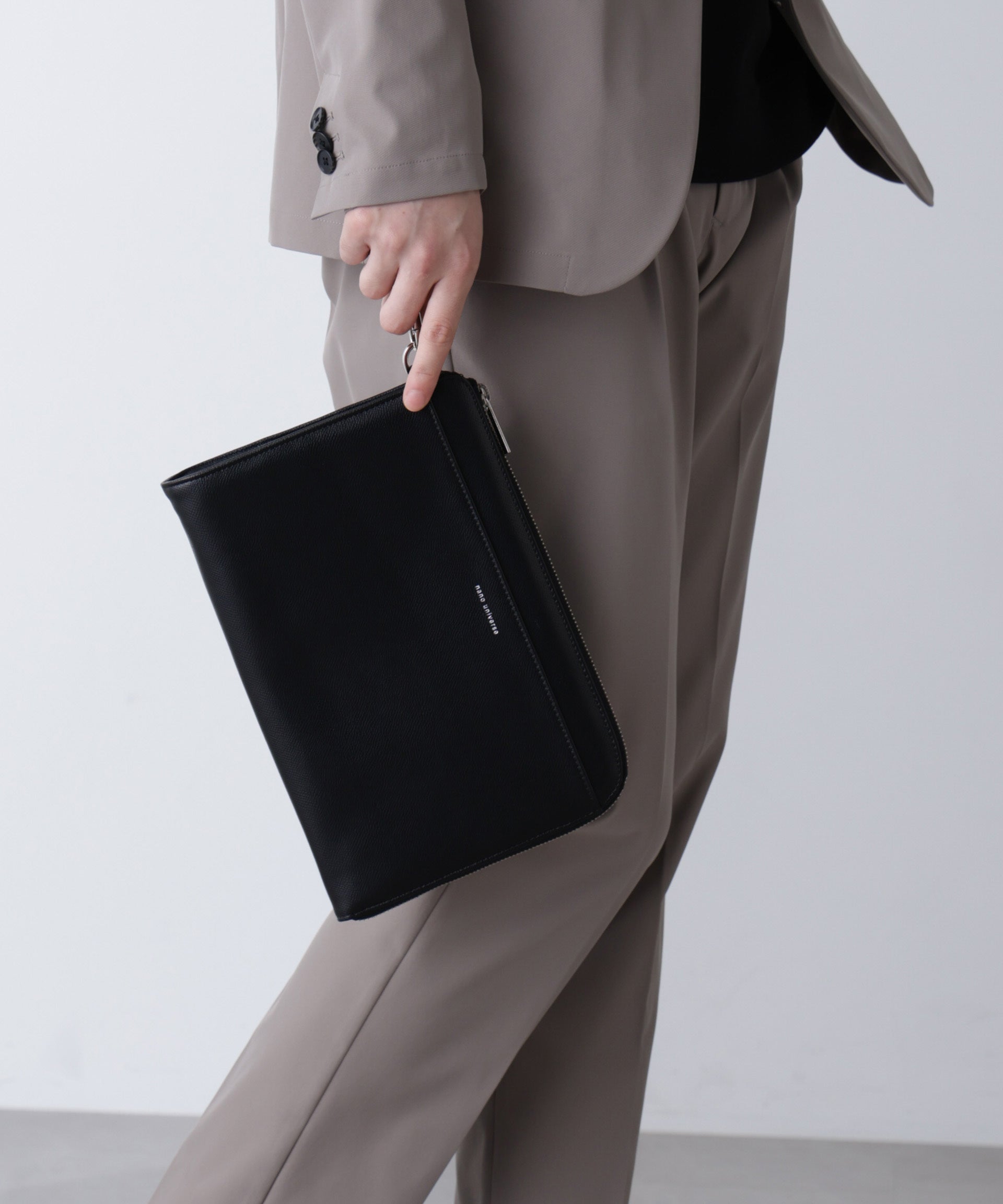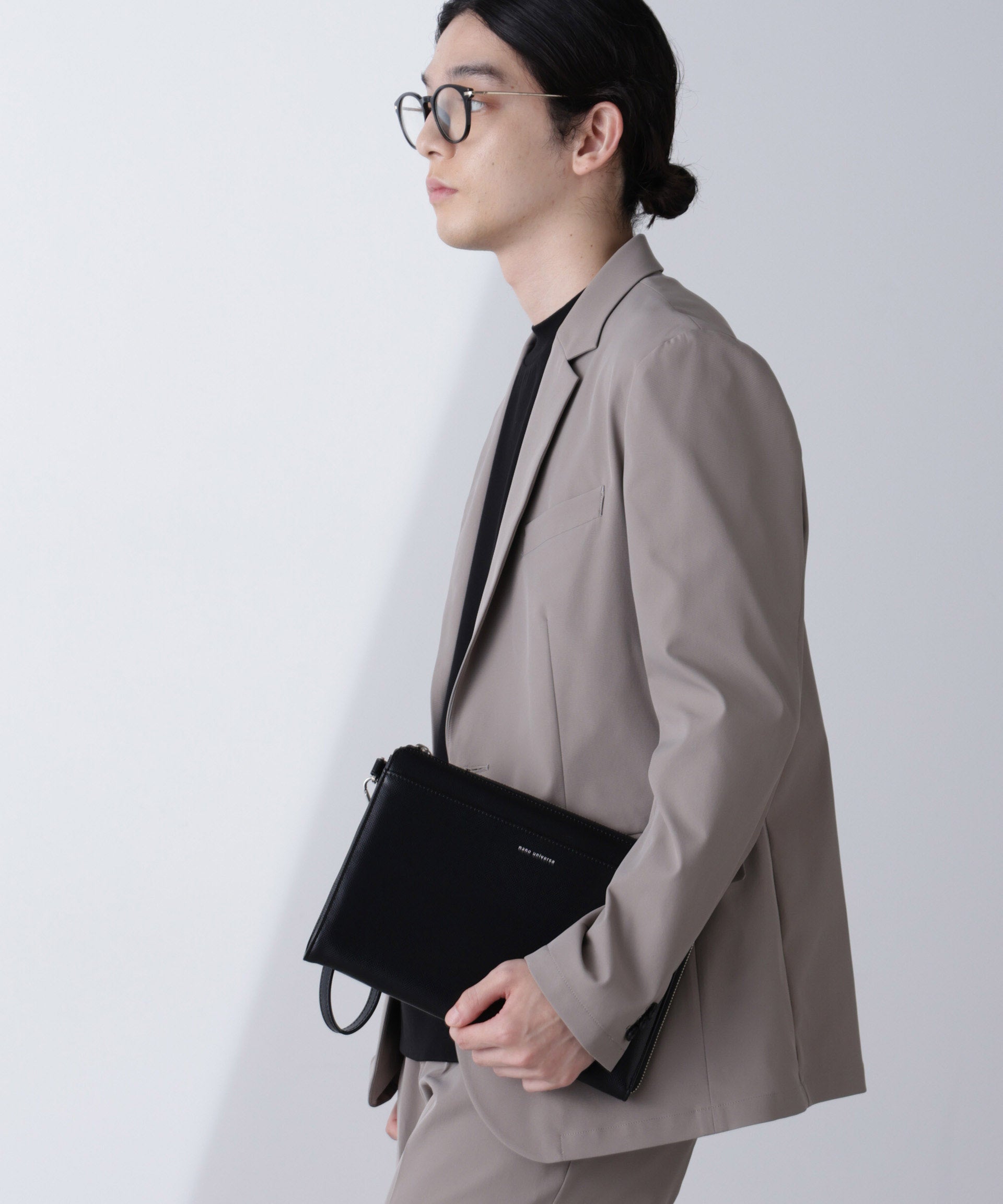『スマートにコーディネートを引き締めるクラッチバッグ』