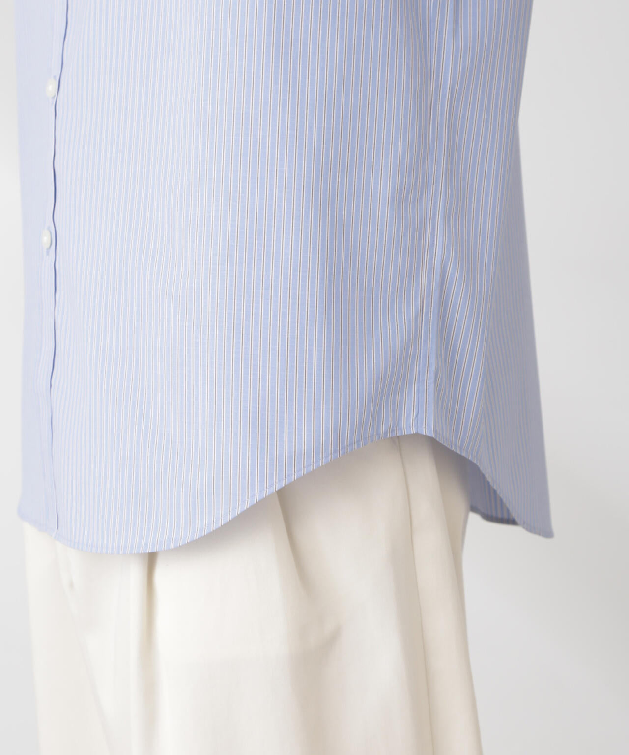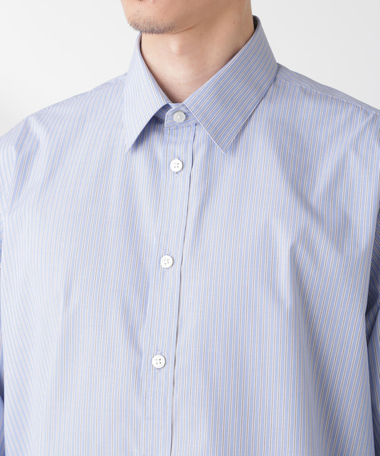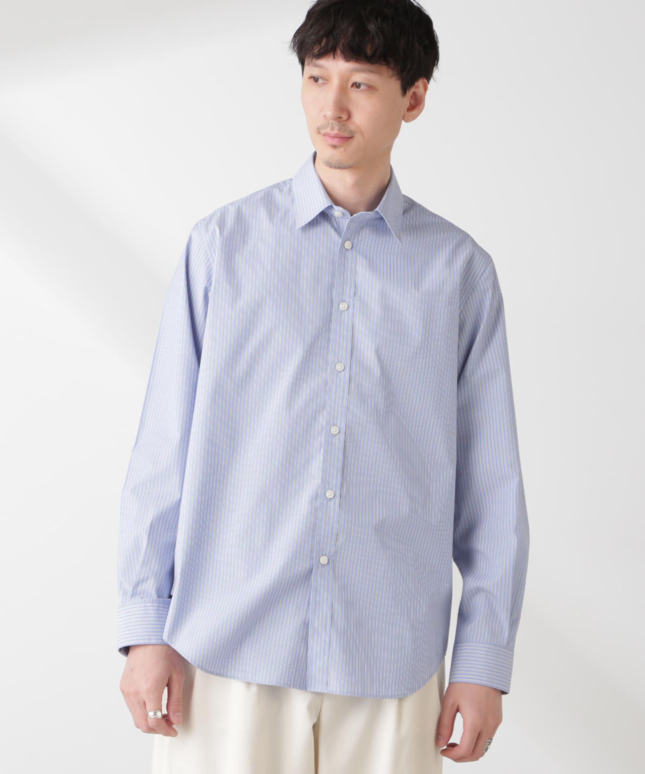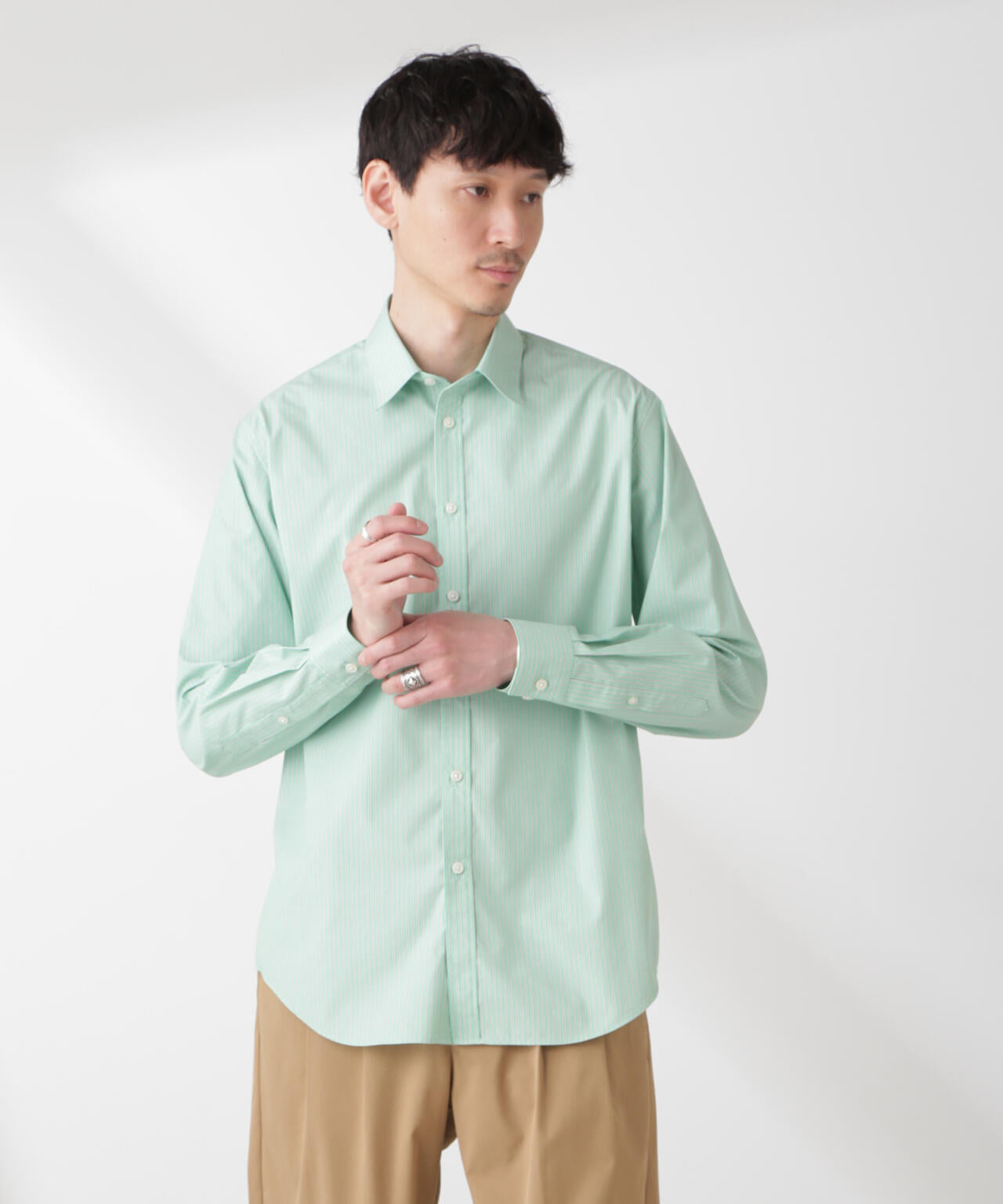 リラックス感がありつつも上品に見せられ機能性も抜群のきれいなカラー展開のストライプレギュラーカラーシャツ。着こなしで幅広いスタイリングを楽しめる万能アイテムです。