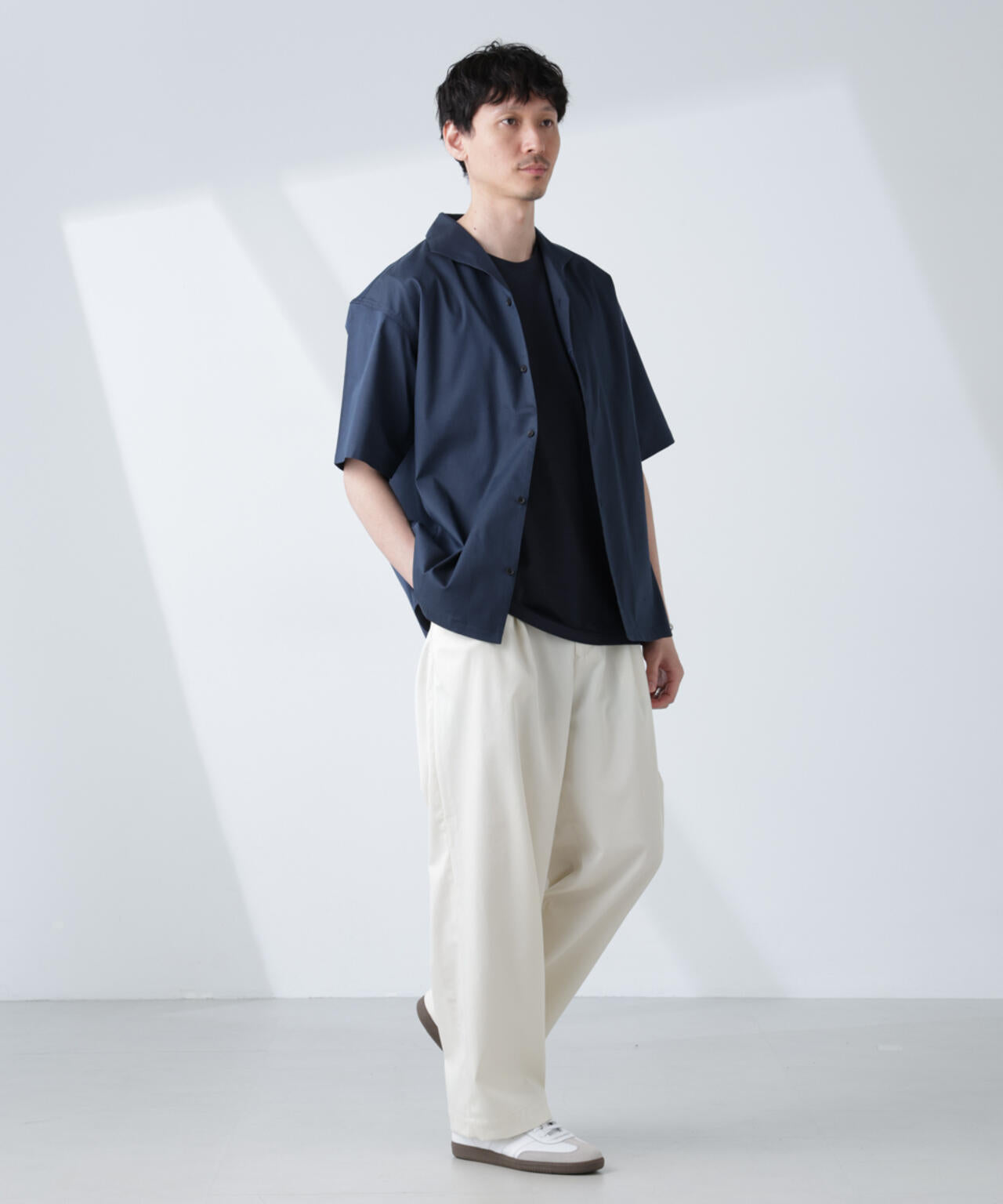 シンプルなシャツに比べて一味違った印象を与え、洗練された雰囲気を演出するワイドカラーシャツ。シンプルなアイテムにこだわりつつ、少しの個性を求める方にぴったりの1着です。