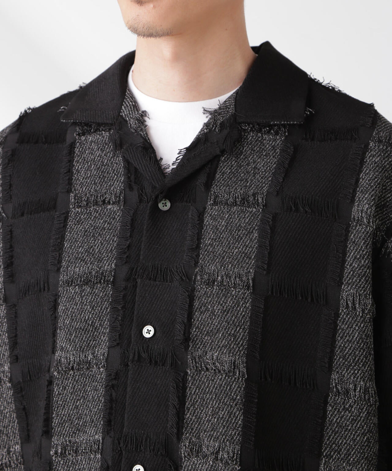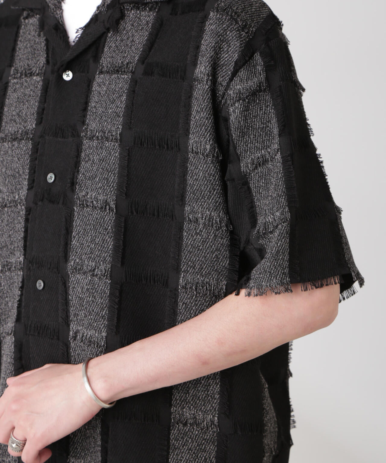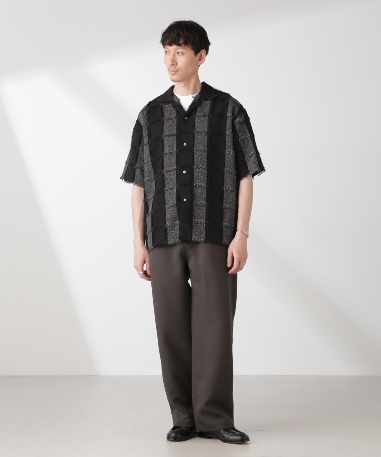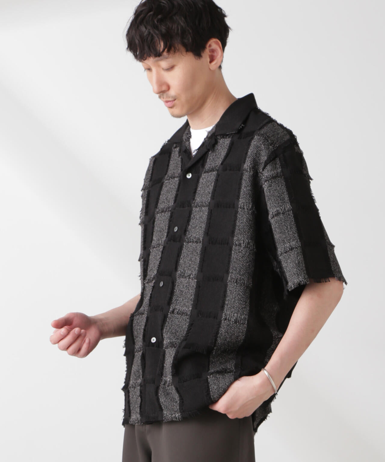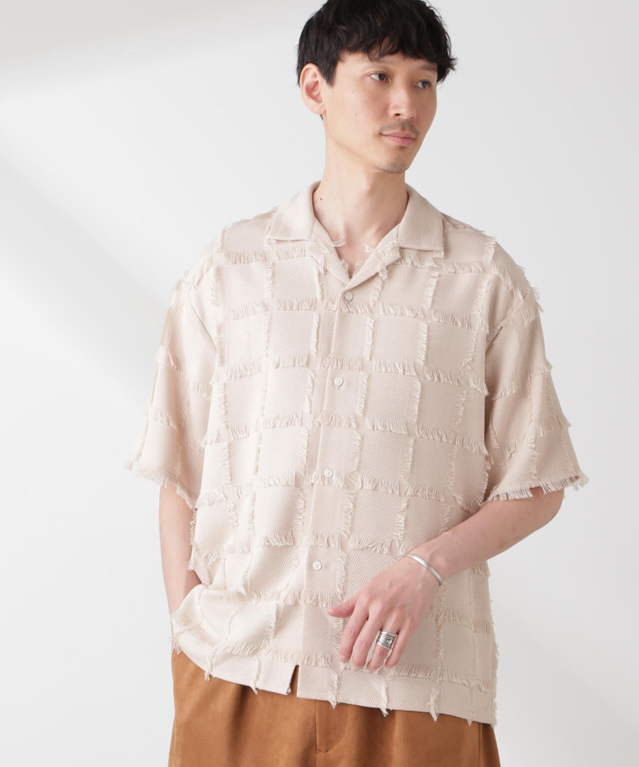 フリンジを活かした、シンプルな仕様の半袖オープンカラーシャツ。レザー小物と合わせる知的な大人の着こなしを叶えたい、そんな1着です。