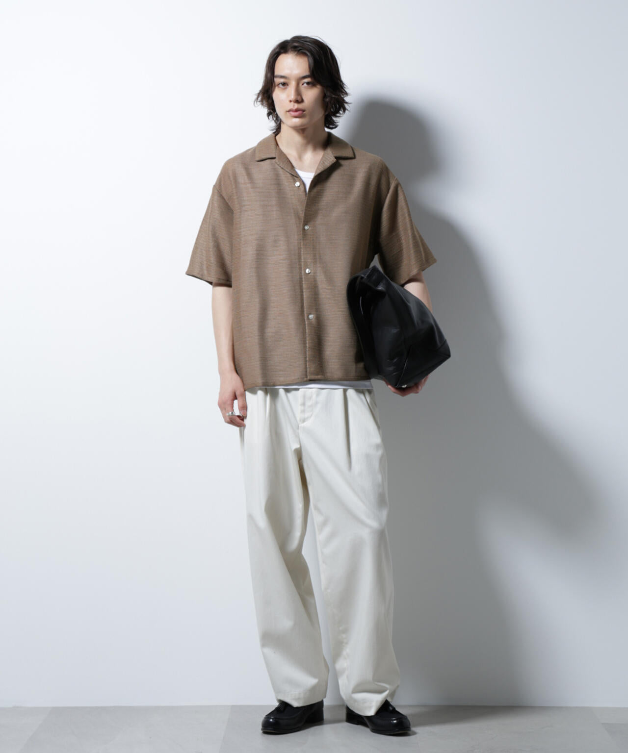 清涼感のあるスタイルを提案するオープンカラーシャツ
