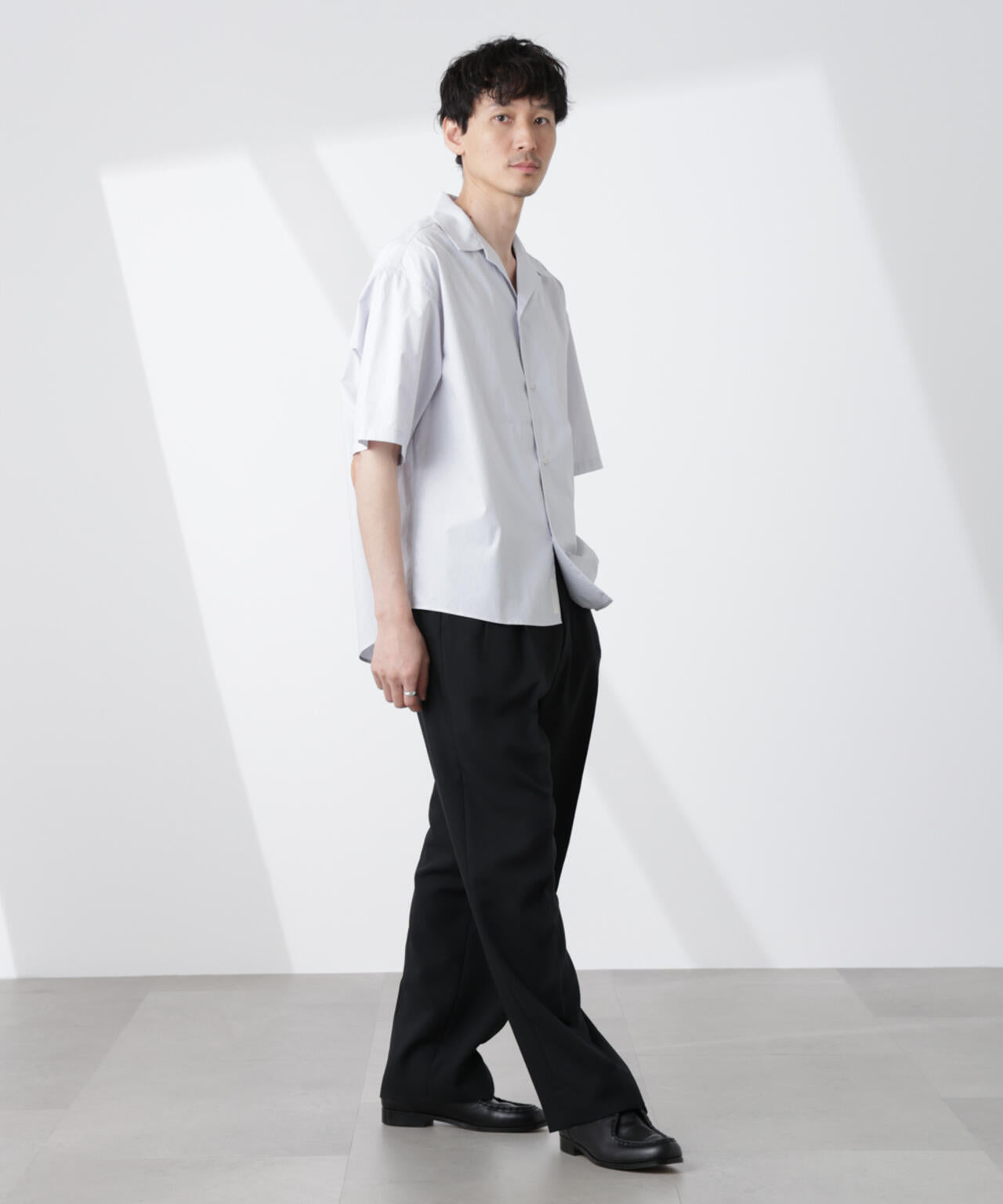 今シーズンより、パターンを全面的に見直し、更なるアップデートを行った「大人のワイドシャツ」シリーズの半袖オープンカラーシャツ。1枚で着た時に映える、細部にこだわったデザインが魅力の1枚です。