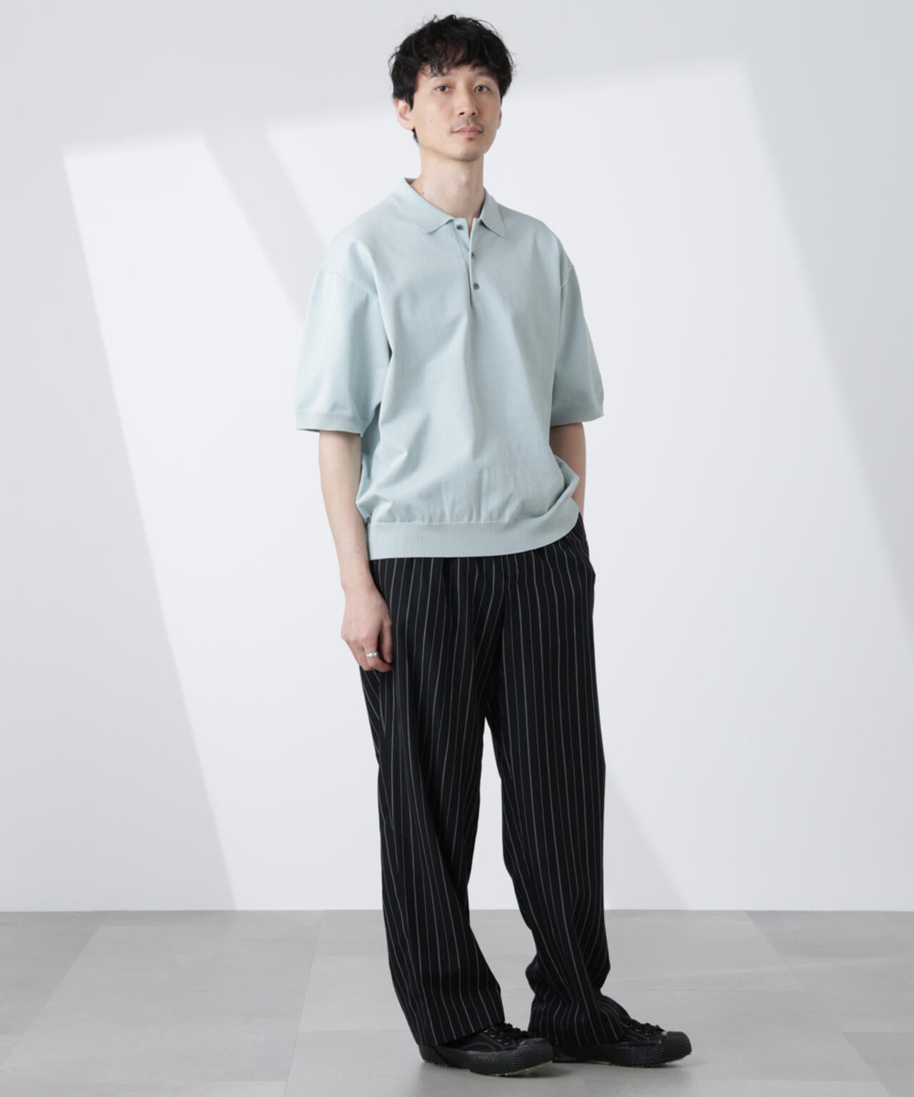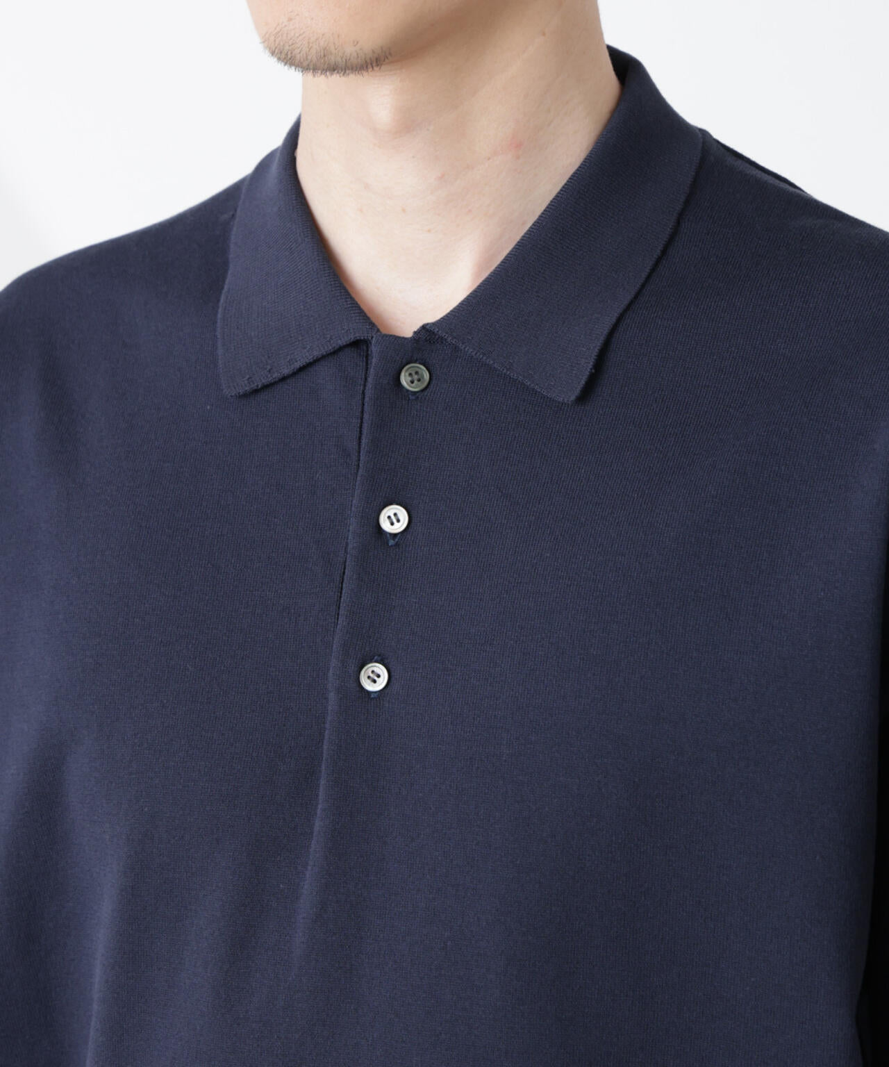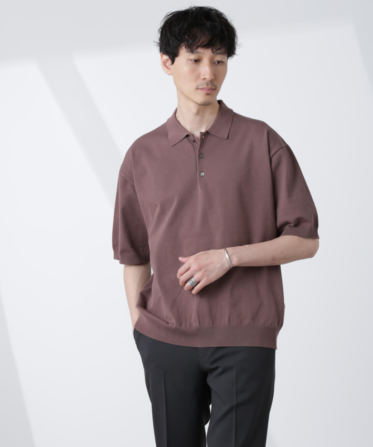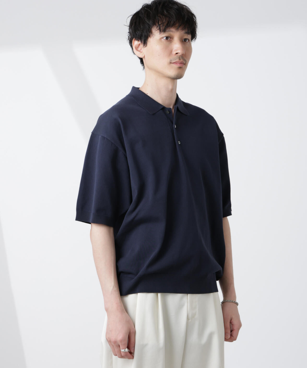 24SSで好評だった二重組織の天竺編みを使用したニットポロシャツ。幅広いスタイルに合わせやすいシンプルデザインでデイリーシーンに重宝します。
