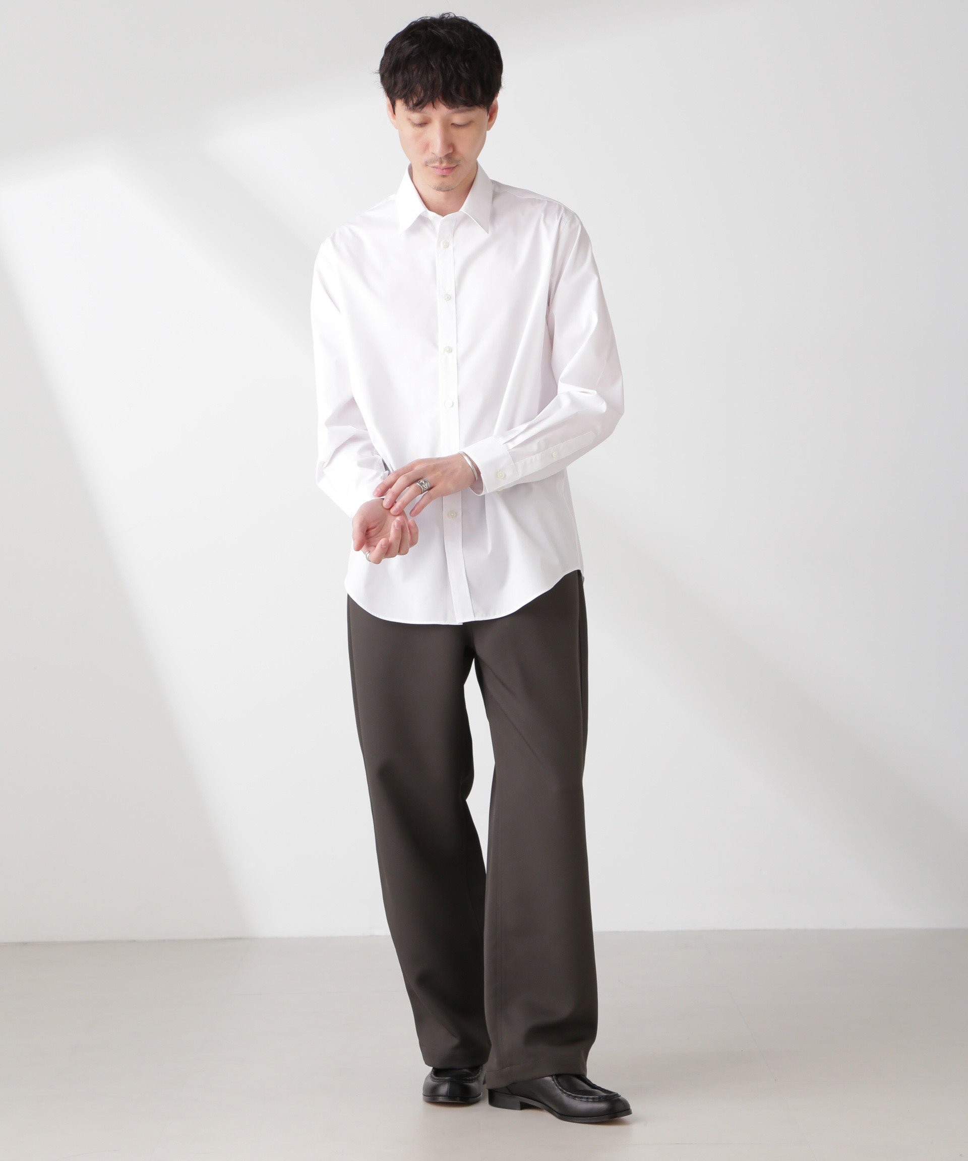 最近流行っているバレルレッグパンツですが、自分に似合わないシルエットなので個人的に敬遠しておりましたが、こちらのパンツは生地感のおかけですんなりと受け入れる事ができました!