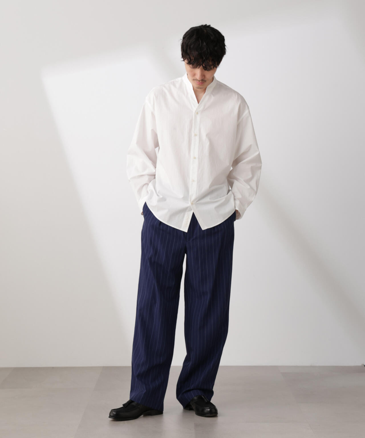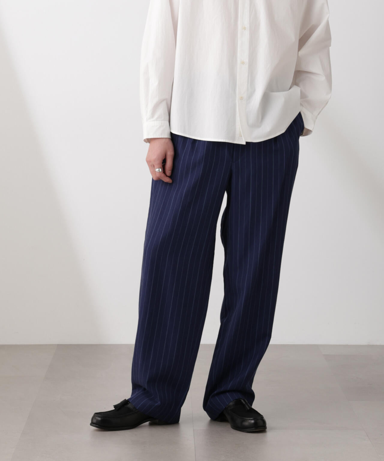 オリジナルのピンストライプでこなれ感のでるワンタックパンツ