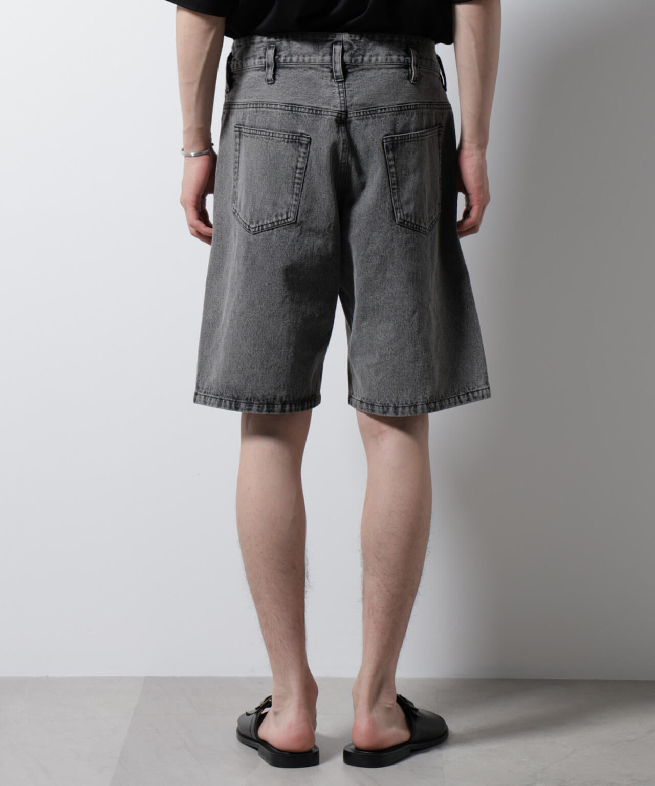 ケミカルウォッシュを施したデニムのバギーショーツ