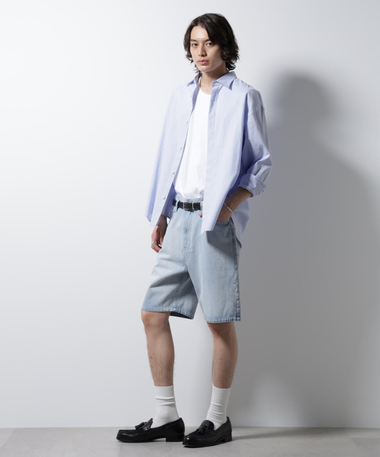 今期のトレンドのケミカルウォッシュを施したデニムのバギーショーツ。膝丈くらいのバギーシルエットがポイントの5pocketデザインが魅力の1本です。