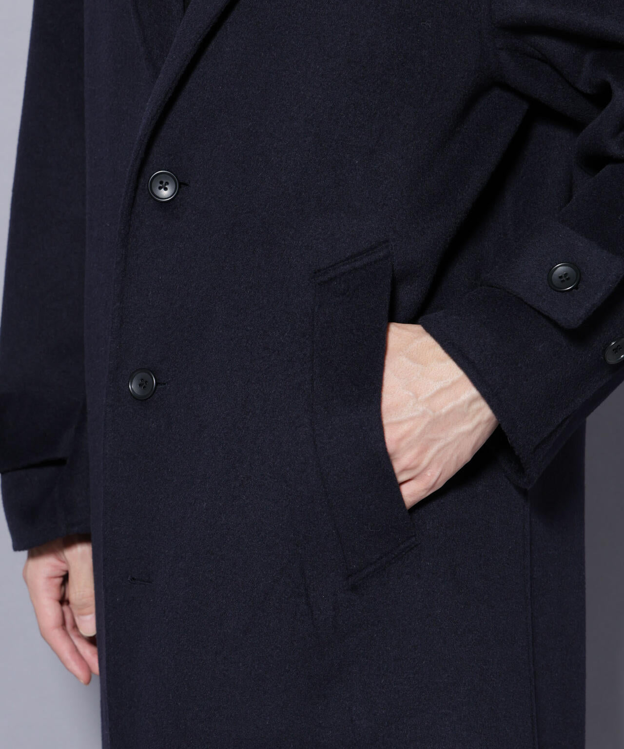 軽さと暖かさを兼ね備えた、上品なウールリバー仕立てのチェスターコート。一重仕立てのため羽織った時の軽やかさが最大の特徴。幅広く愛されるオーセンティックなチェスター型で、ONでもOFFでも幅広いシーンで活躍します。