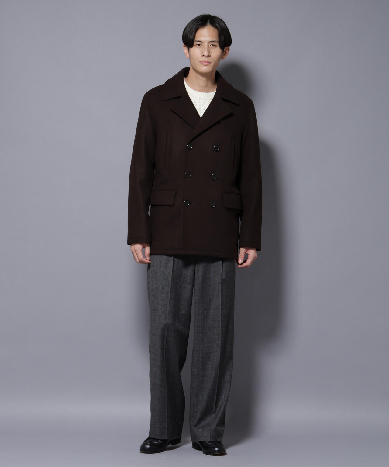 ナノユニバースオリジナルファブリックのダブルブレストPコート
