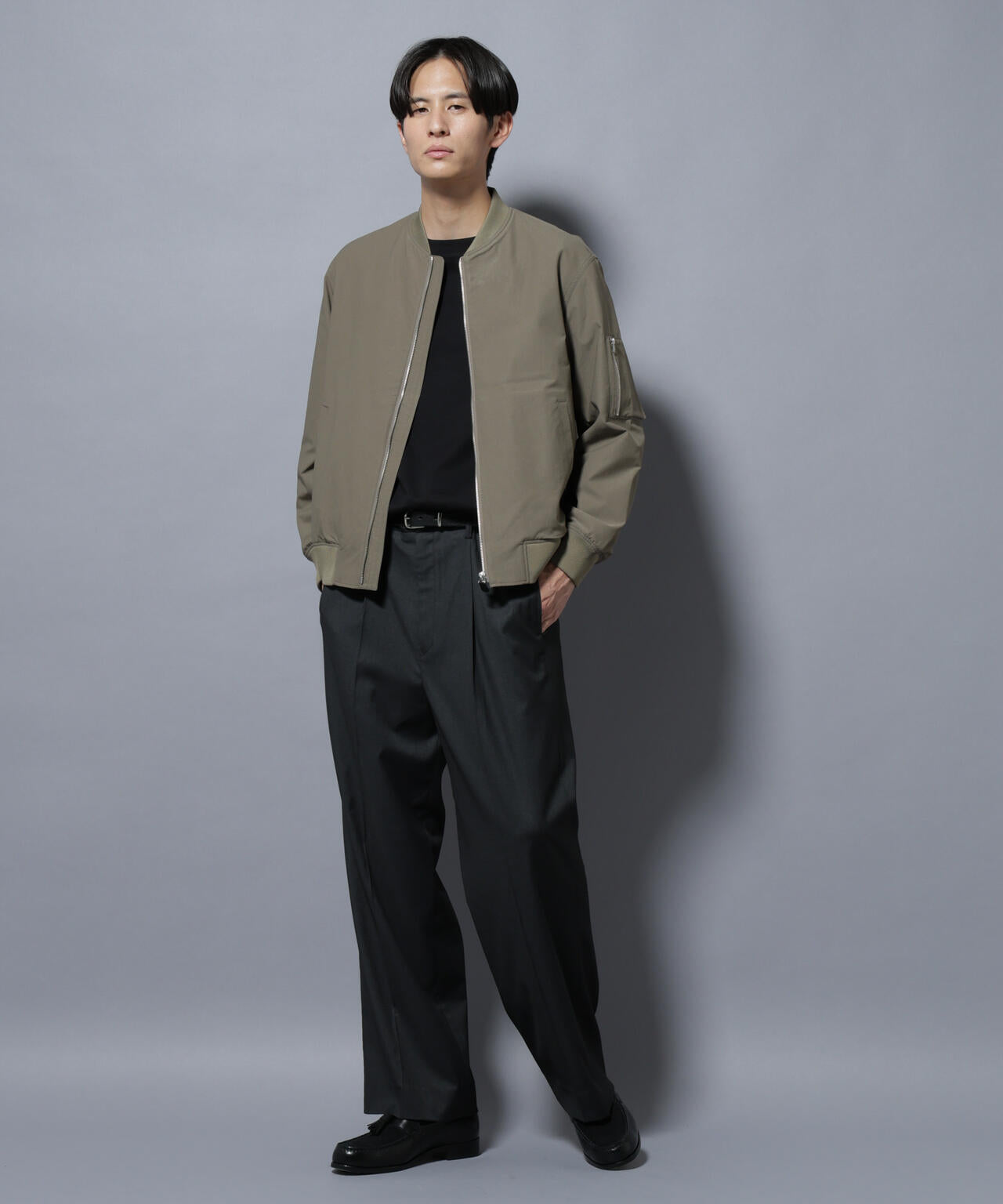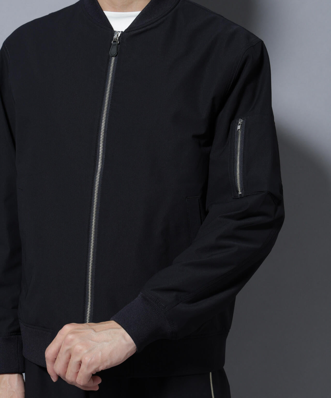 スッキリとしたシルエットのスタイリッシュなMA-1。耐久性に優れたTEXBRID糸を使用し、ツイル組織に撥水加工を施した素材を使用。肉厚過ぎない素材感でシーズン長く着回せる1着です。