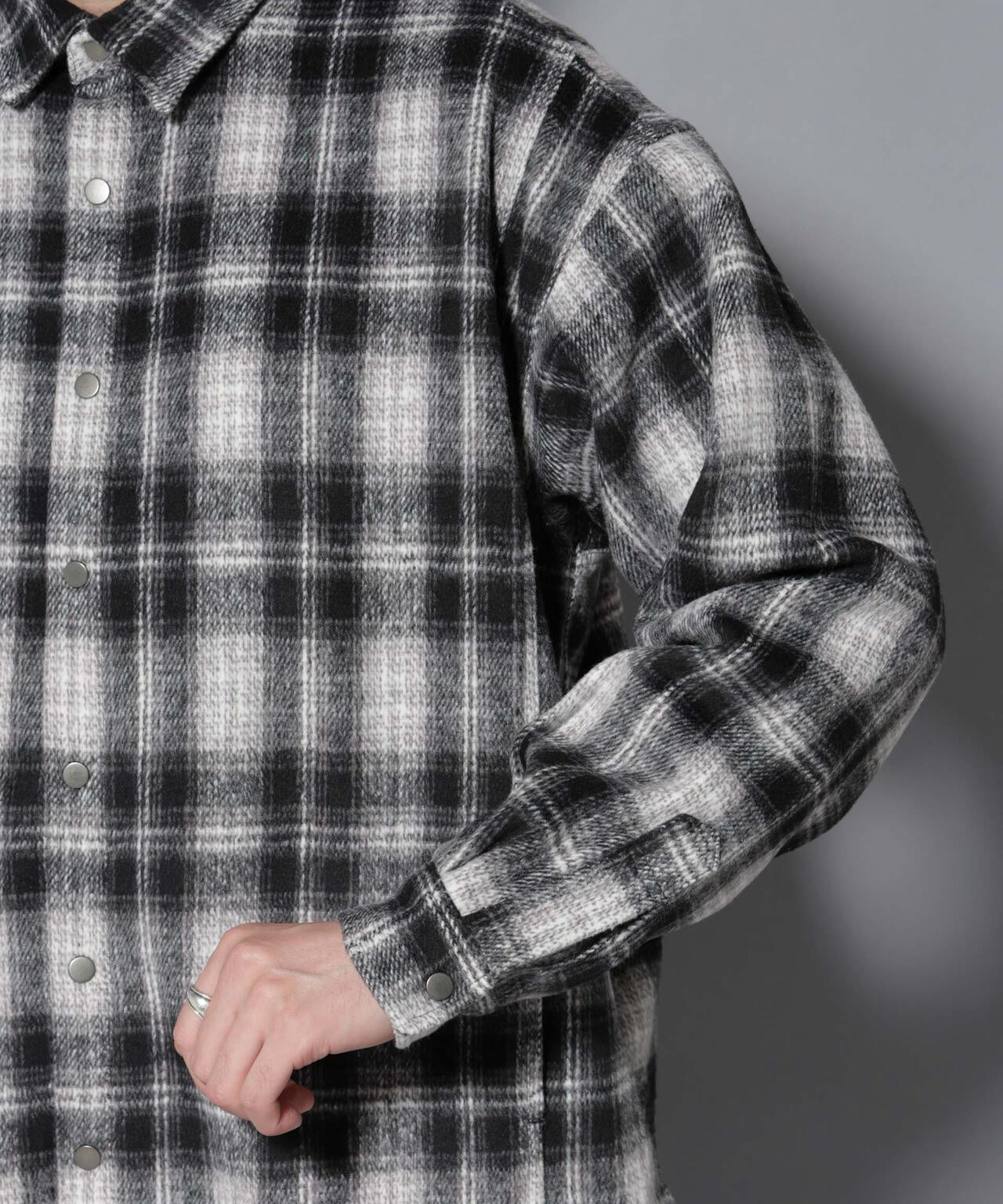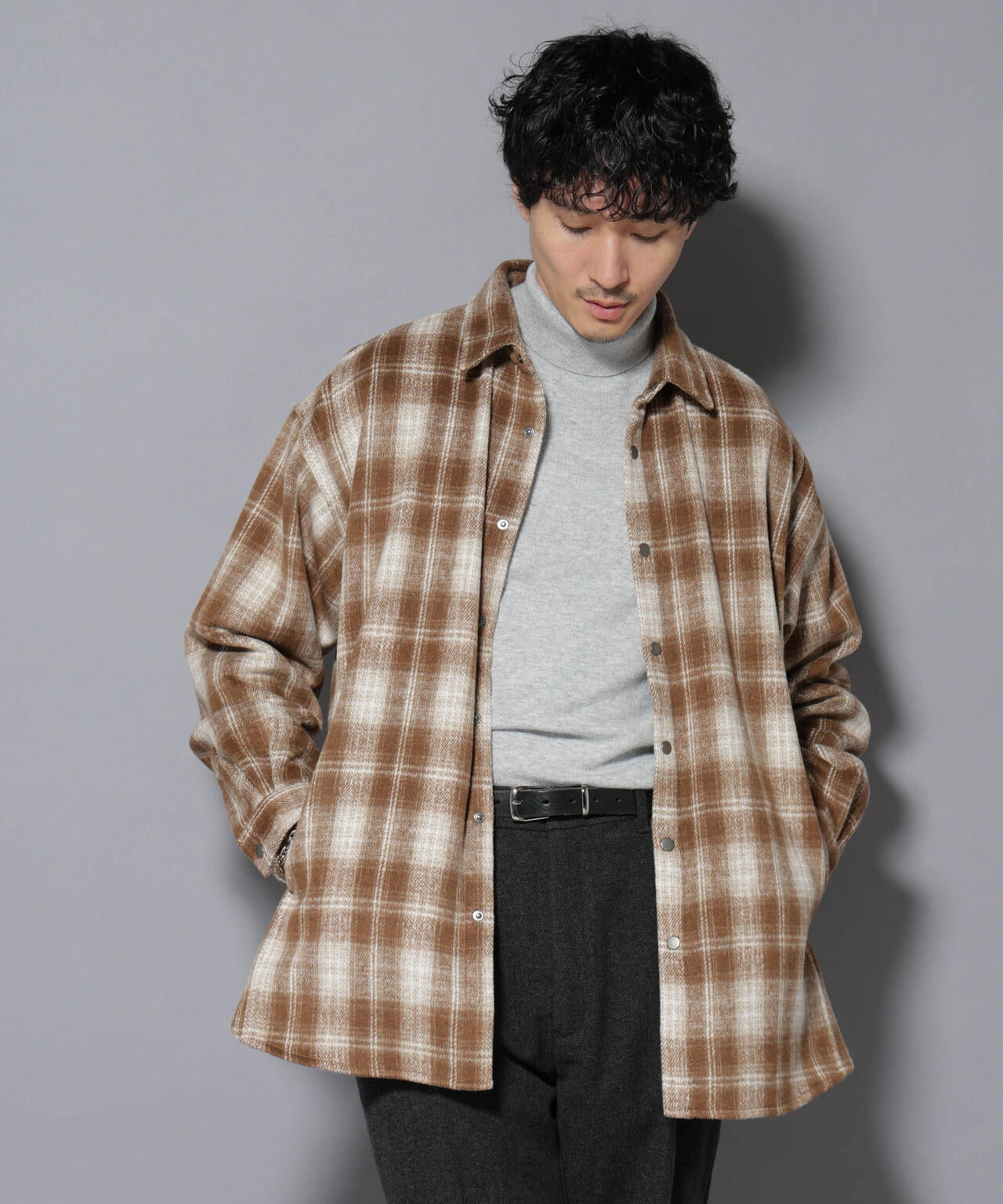 シャギー素材を使用した上品な印象のシャツジャケット。大人のカジュアルスタイルに重宝する1着です。