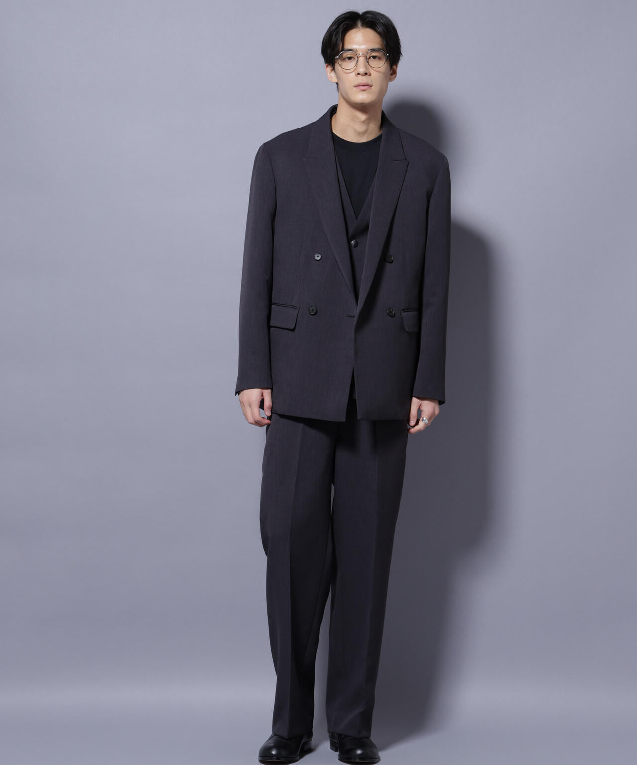 ・同素材のベスト、パンツと合わせた3ピースでの着用がおすすめ