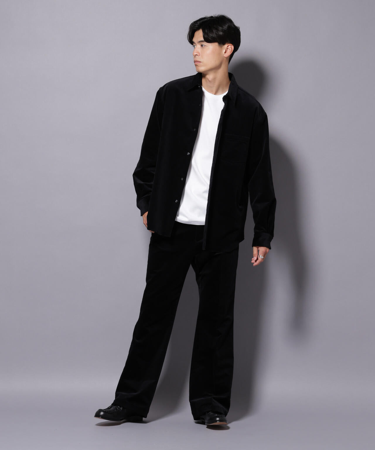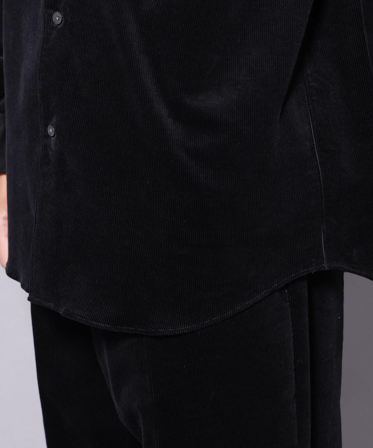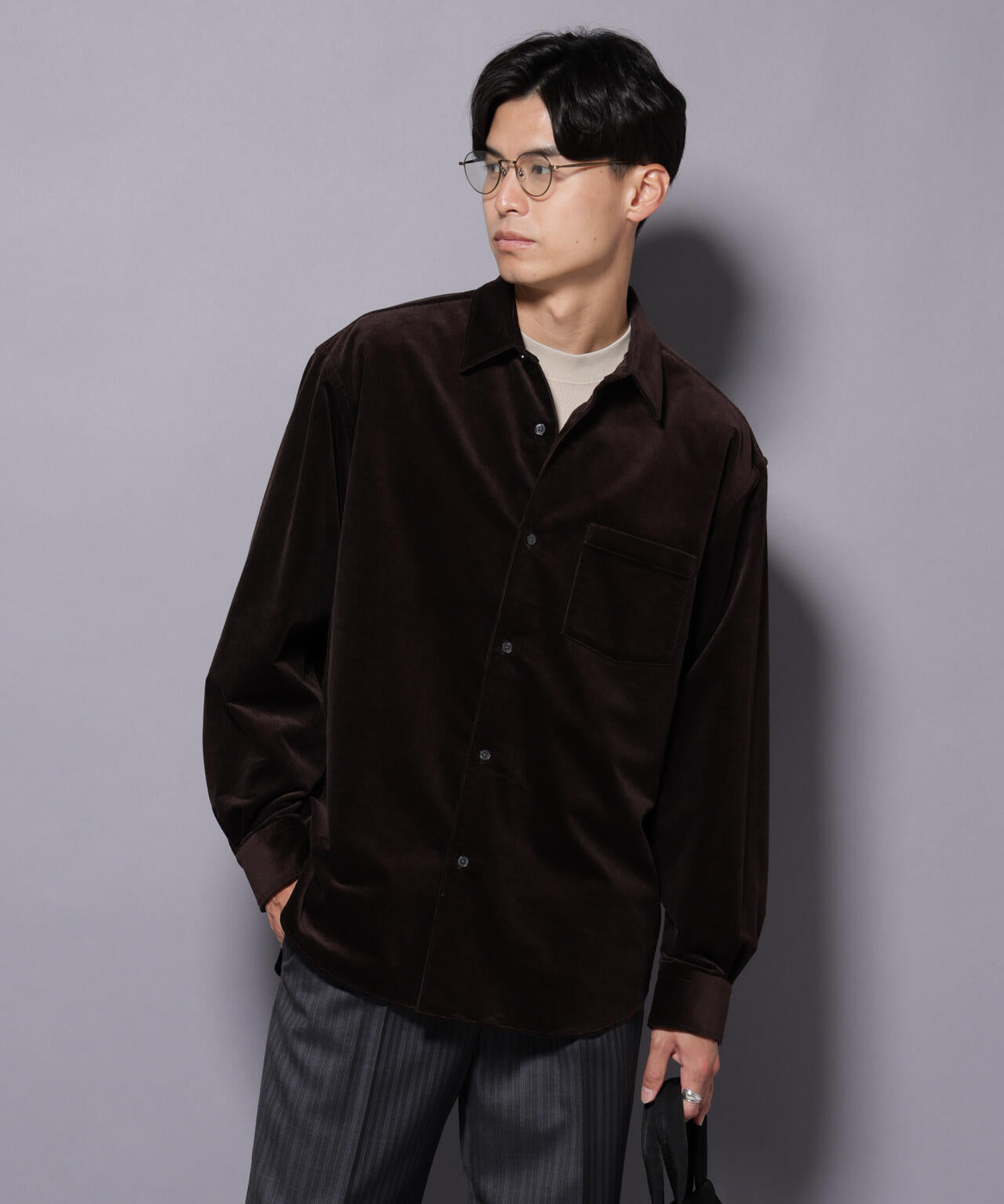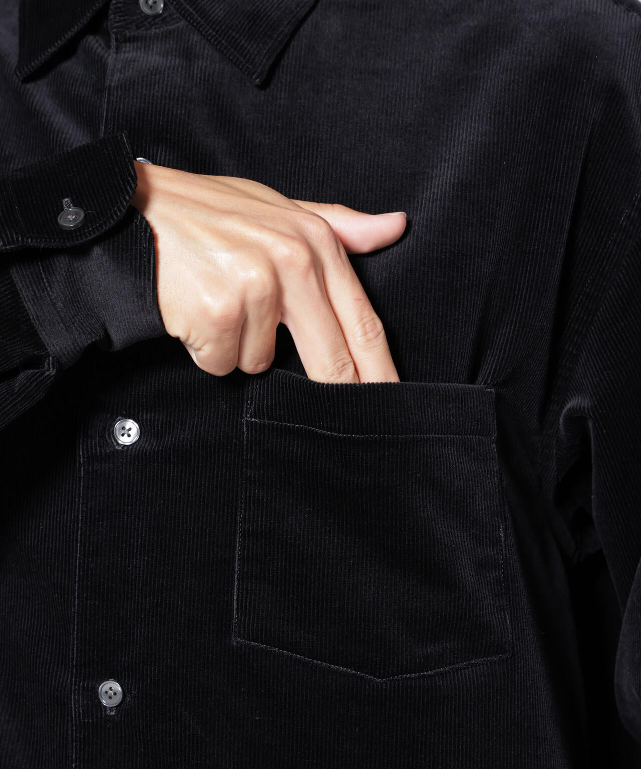 16Wの上品な畝感のあるコーデュロイを使用した襟付きシャツ。ややハリのある素材感がモダンな印象を演出。暖冬のシーズンにも活躍する軽やかな羽織りとしておすすめの一着です。