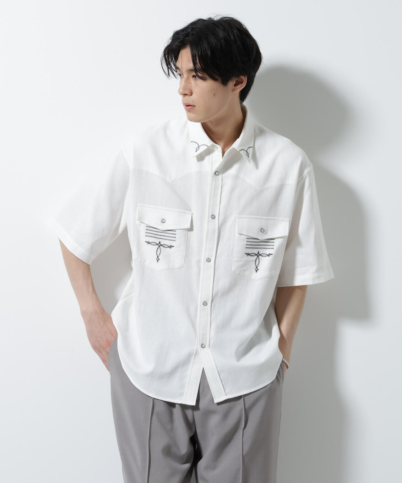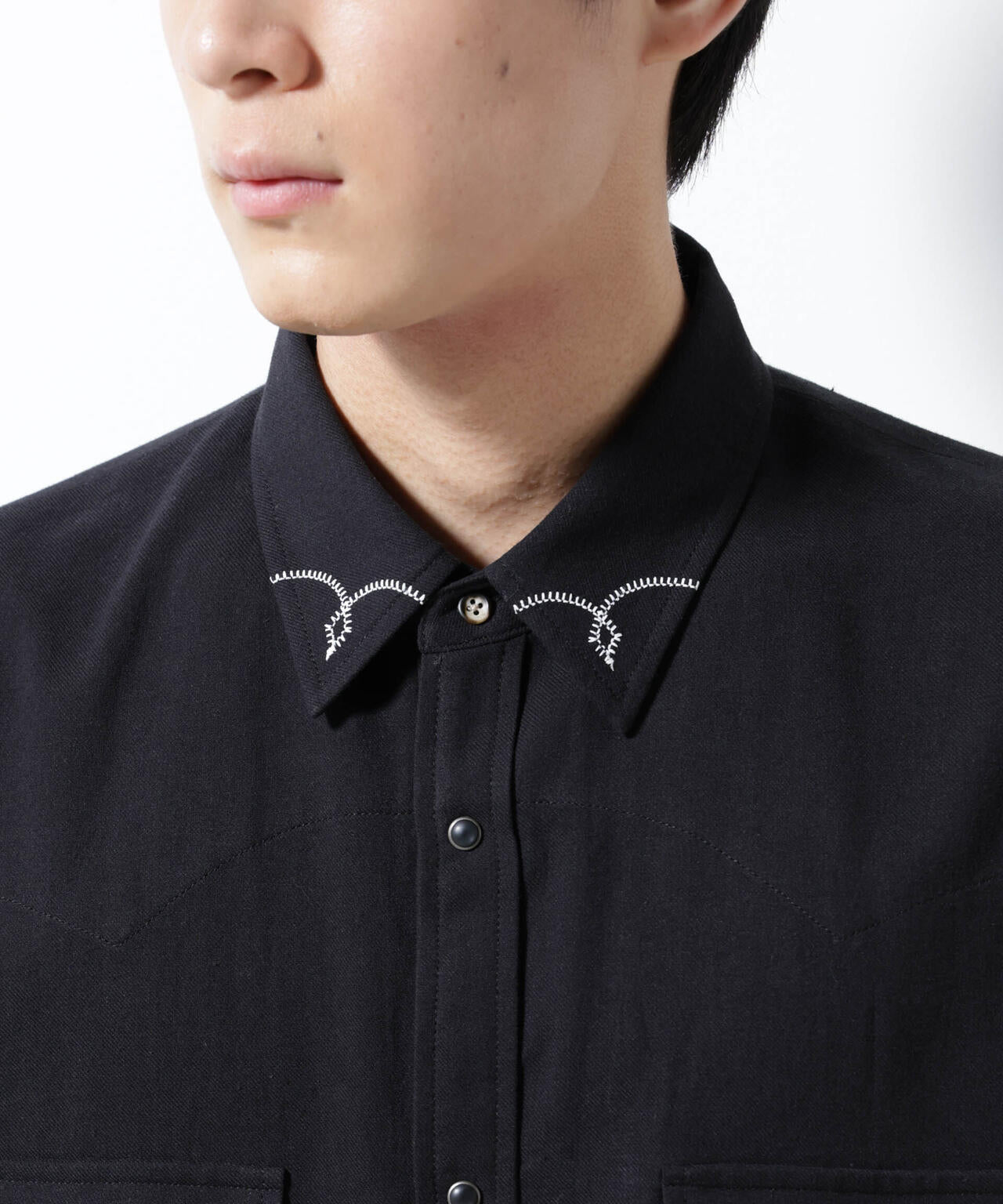 アメリカ西部のカウボーイ文化にルーツを持つウェスタンシャツ。ポケットと襟先に刺繍を施しボヘミアンな雰囲気に仕上げた1着です。