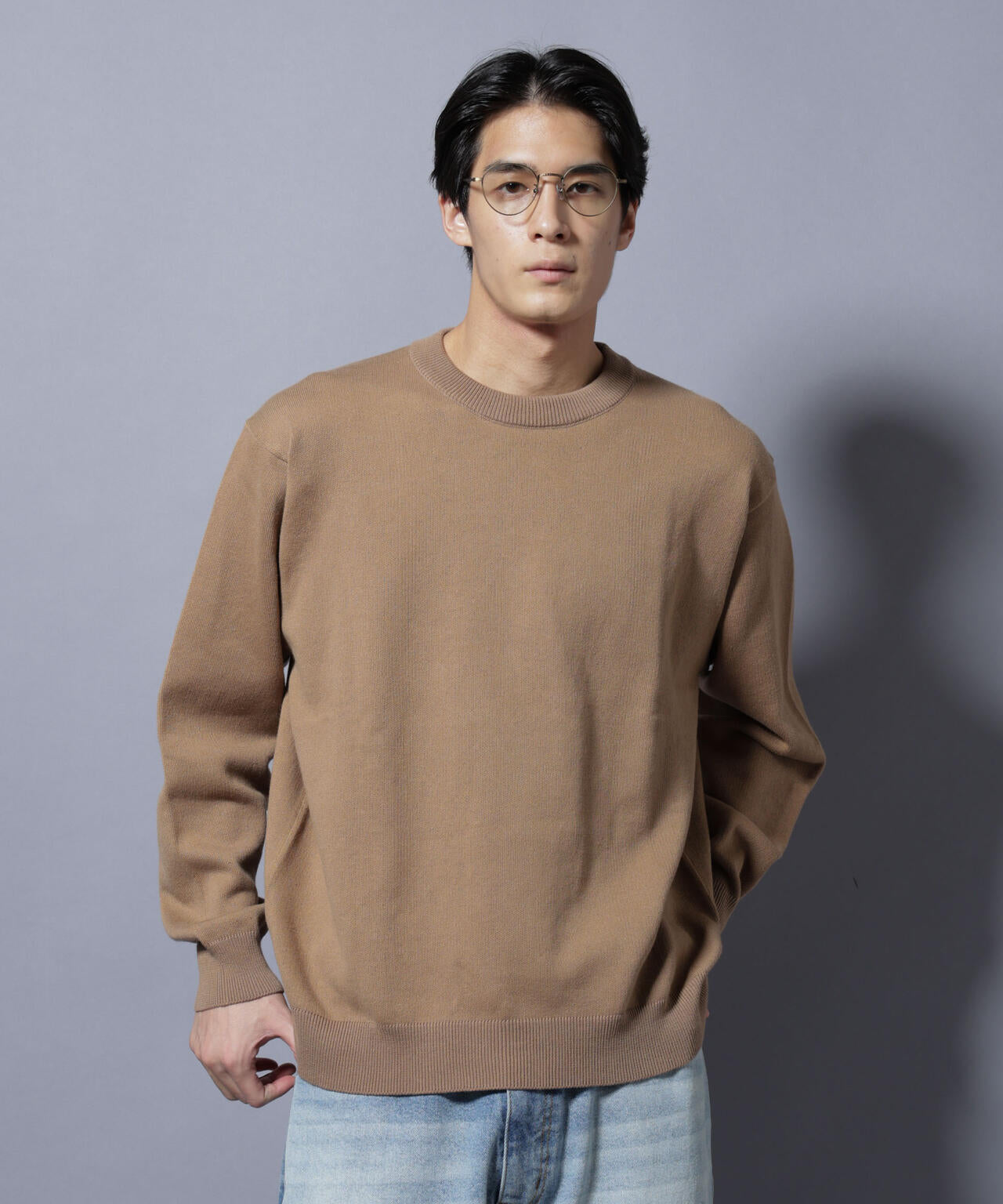 大人の男性でも着やすいスウェットライクなニット。カジュアルすぎない素材感と大きすぎないシルエットが大人向けの一枚。コットン素材の着心地の良さも兼ね備えた大人のカジュアルアイテムです。
