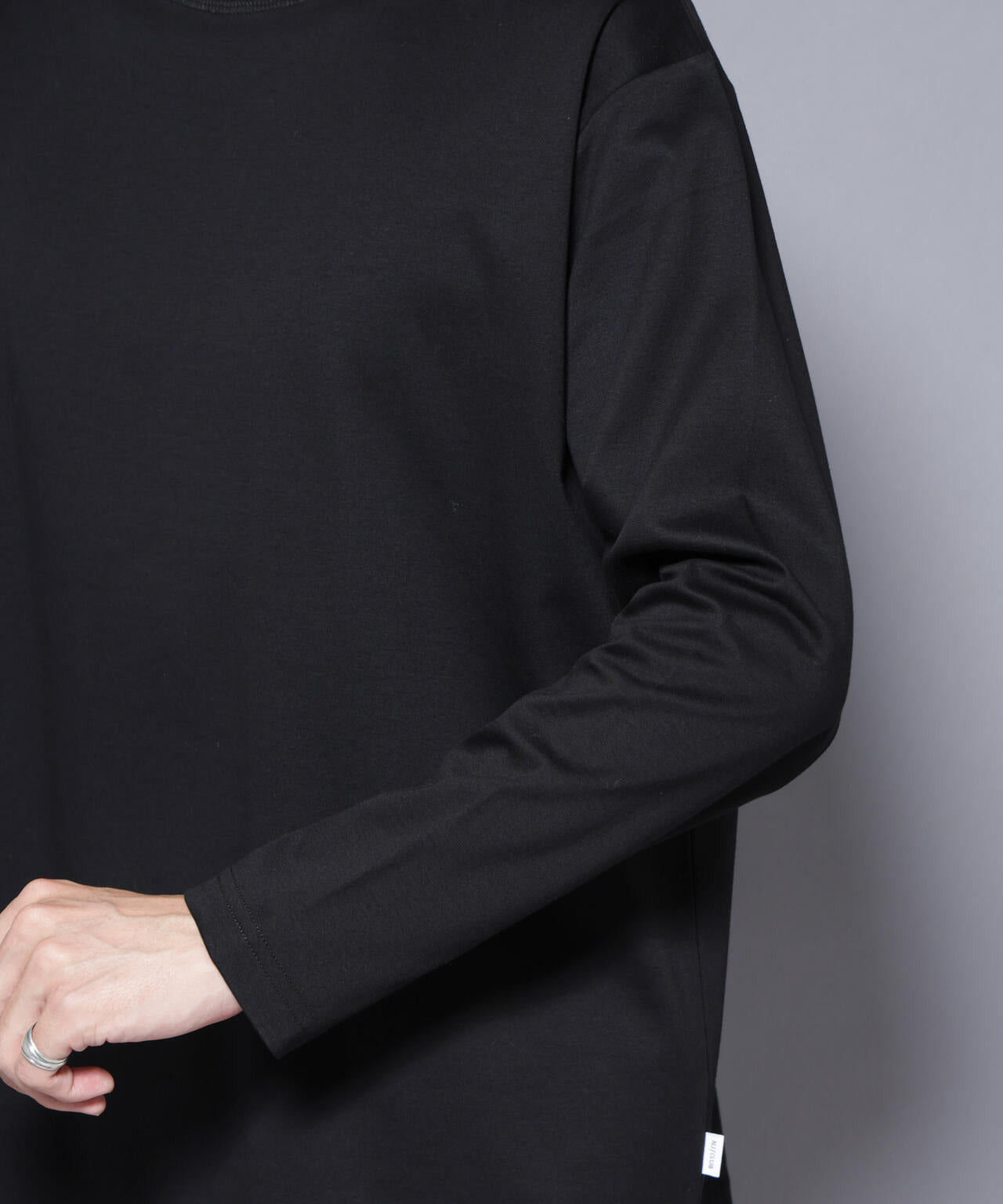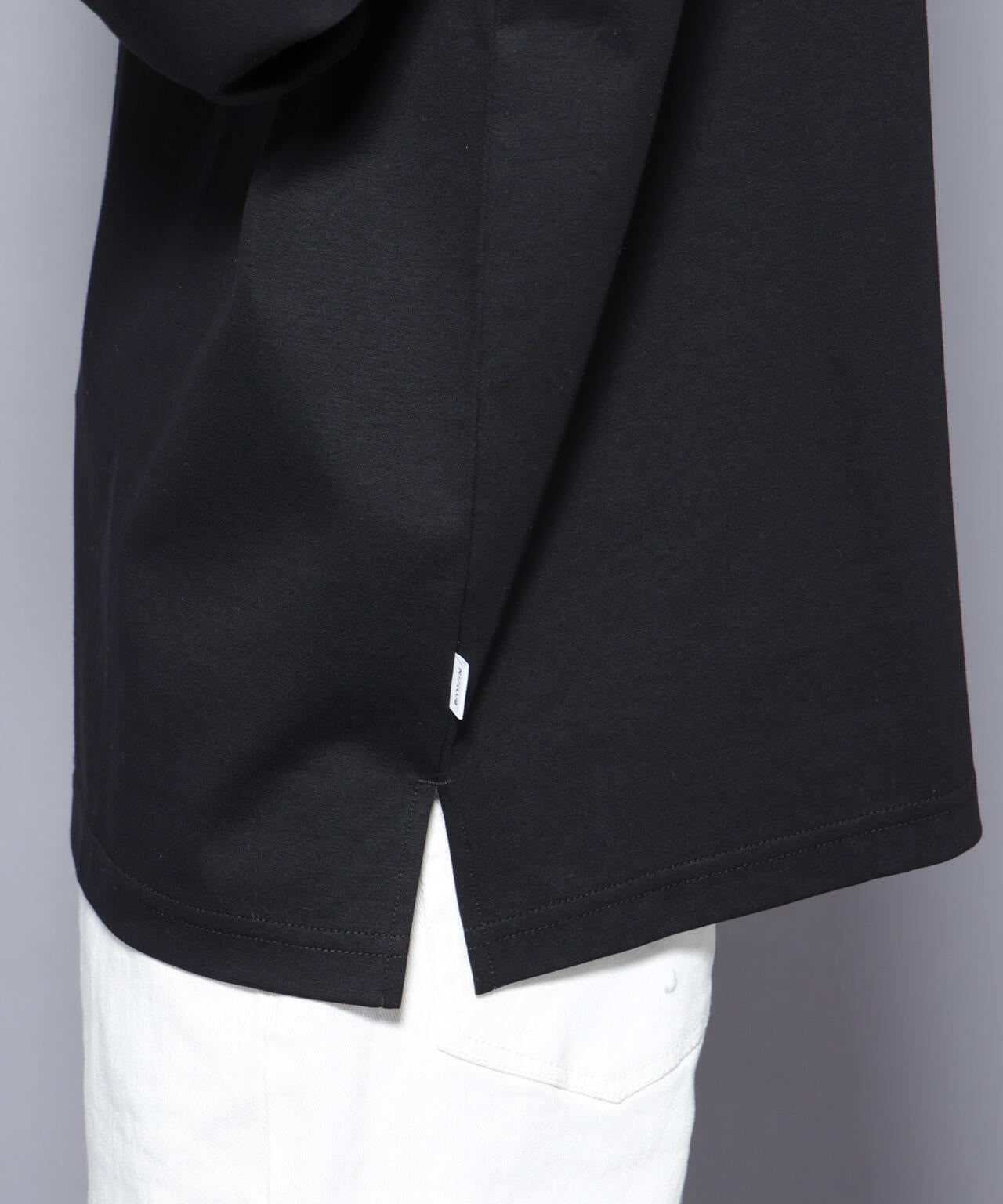 程よい厚みで安心感のある天竺素材を使用したボートネックTシャツ。インでもアウトでもバランス良く着られる設計で、一枚でもサマになるアイテムです。