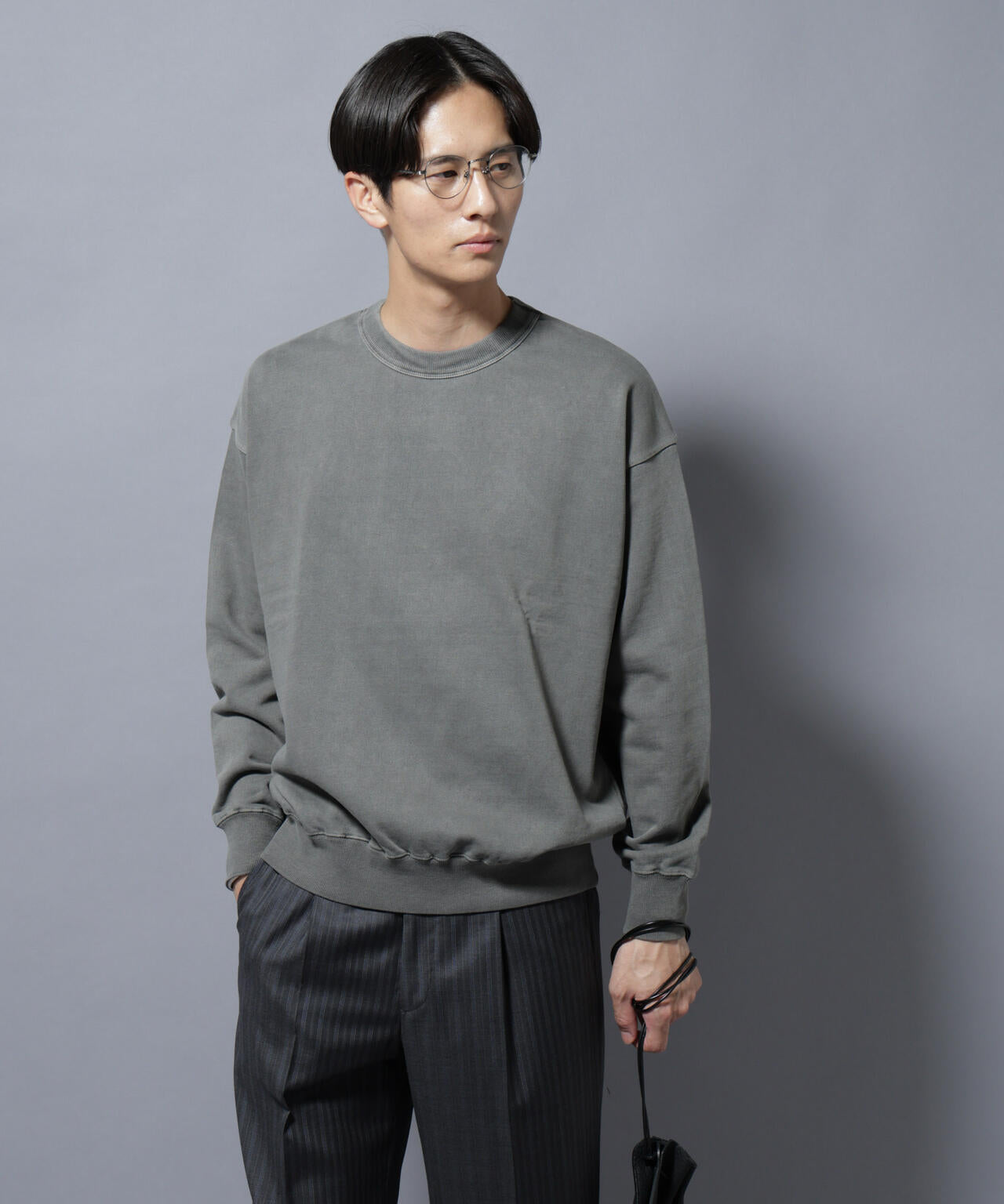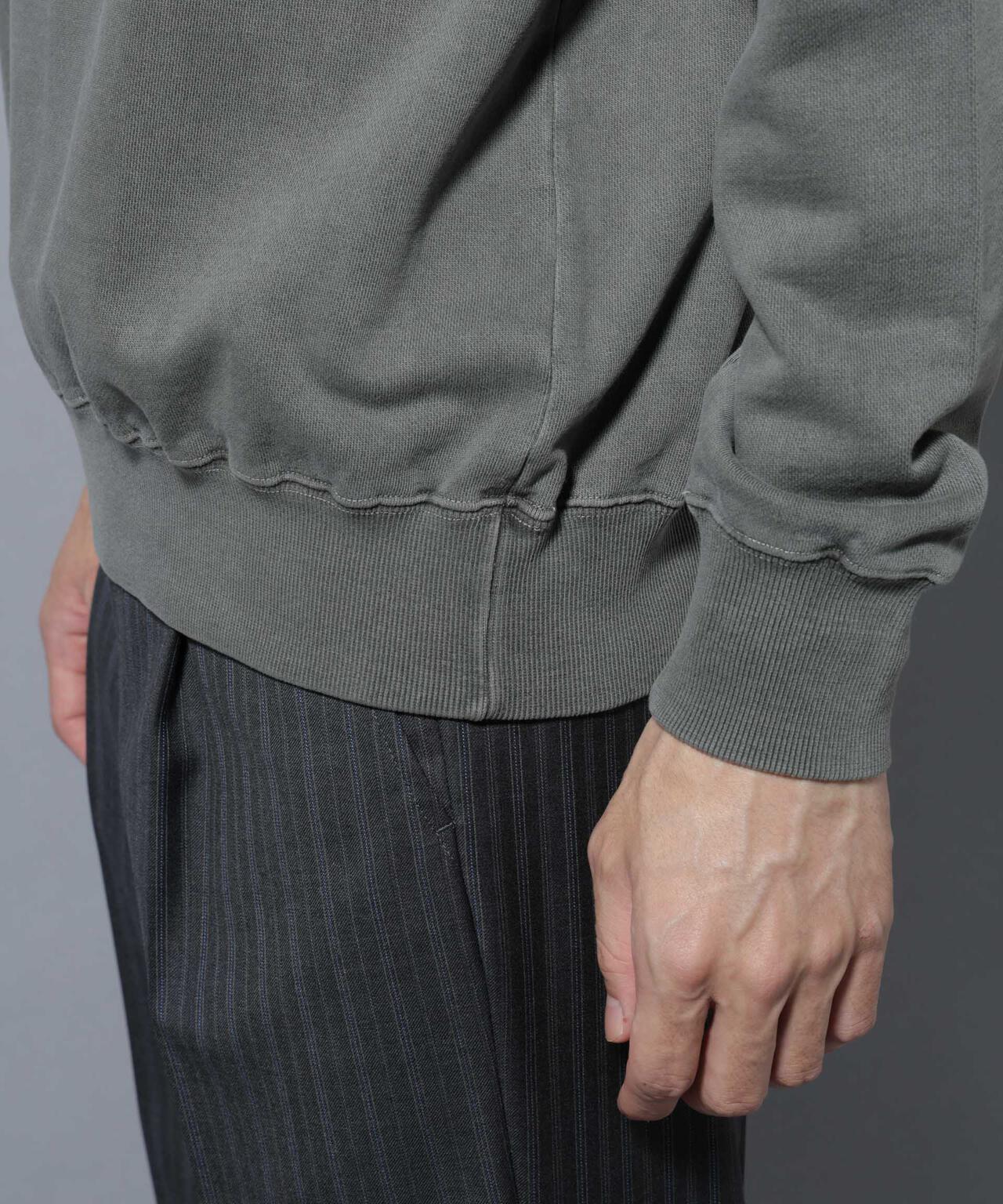 ガーメントダイを施し、ヴィンテージ感を演出したクルーネックスウェット