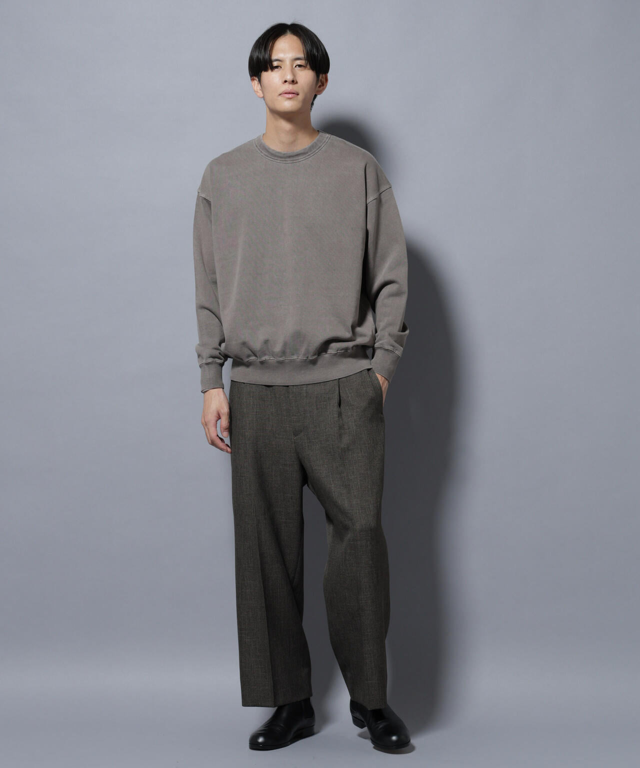 ガーメントダイを施し、ヴィンテージ感を演出したクルーネックスウェット。残暑の時期から取り入れやすいのが嬉しいポイント。秋冬感を演出できるトレンドライクな一枚です。