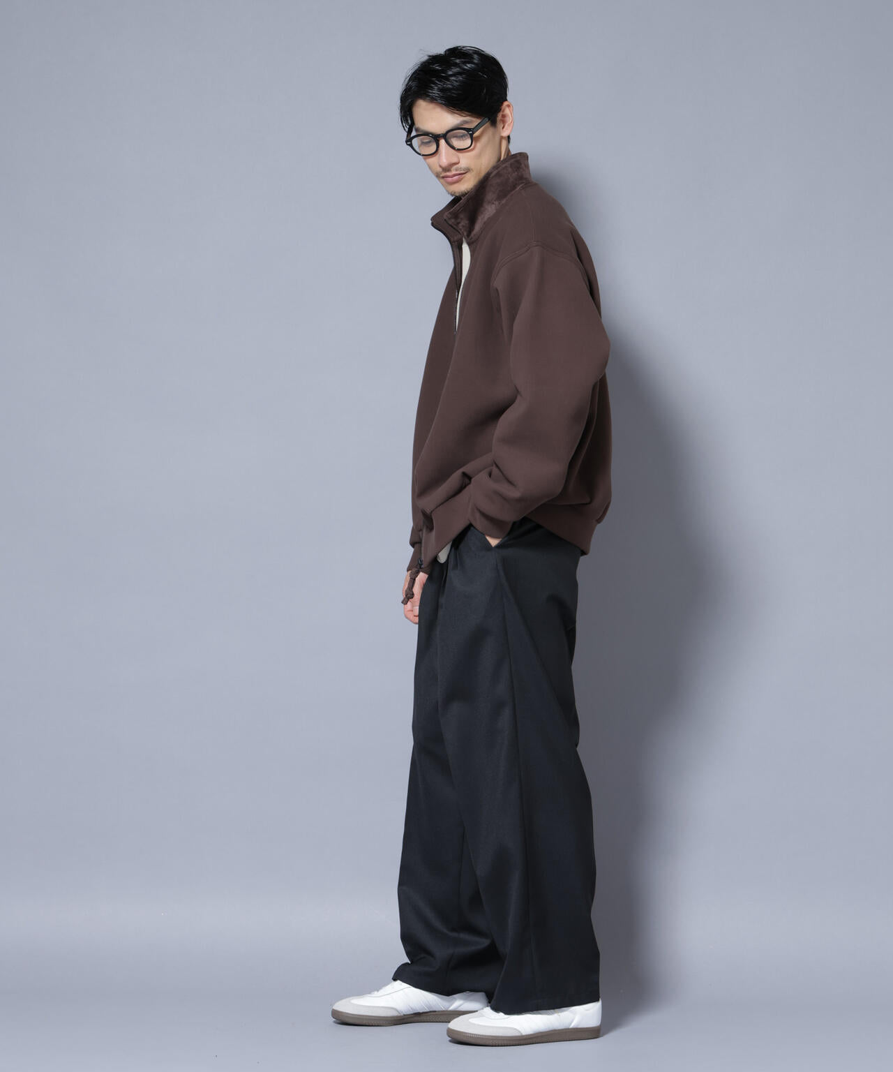 ストレッチ性抜群のカットソー素材を使用したフルジップ仕様のカットソーブルゾン。襟部分にはフェイクスエードを使用し、表情豊かなデザインに仕上げた1着。コートのインナーやライトアウターとしてロングシーズン活躍するアイテムです。