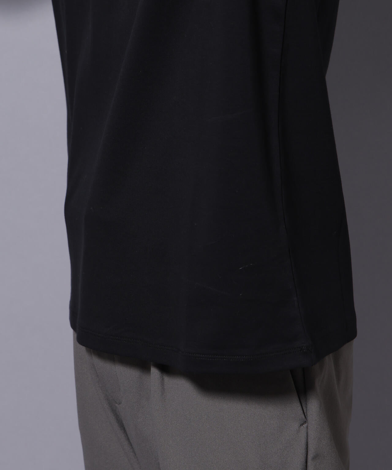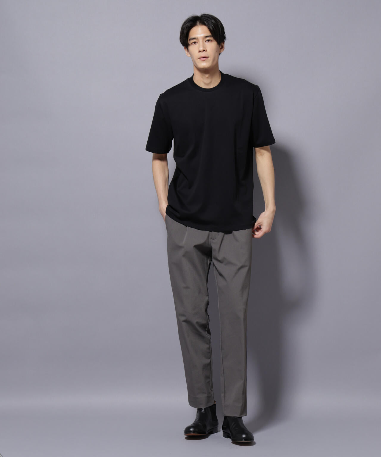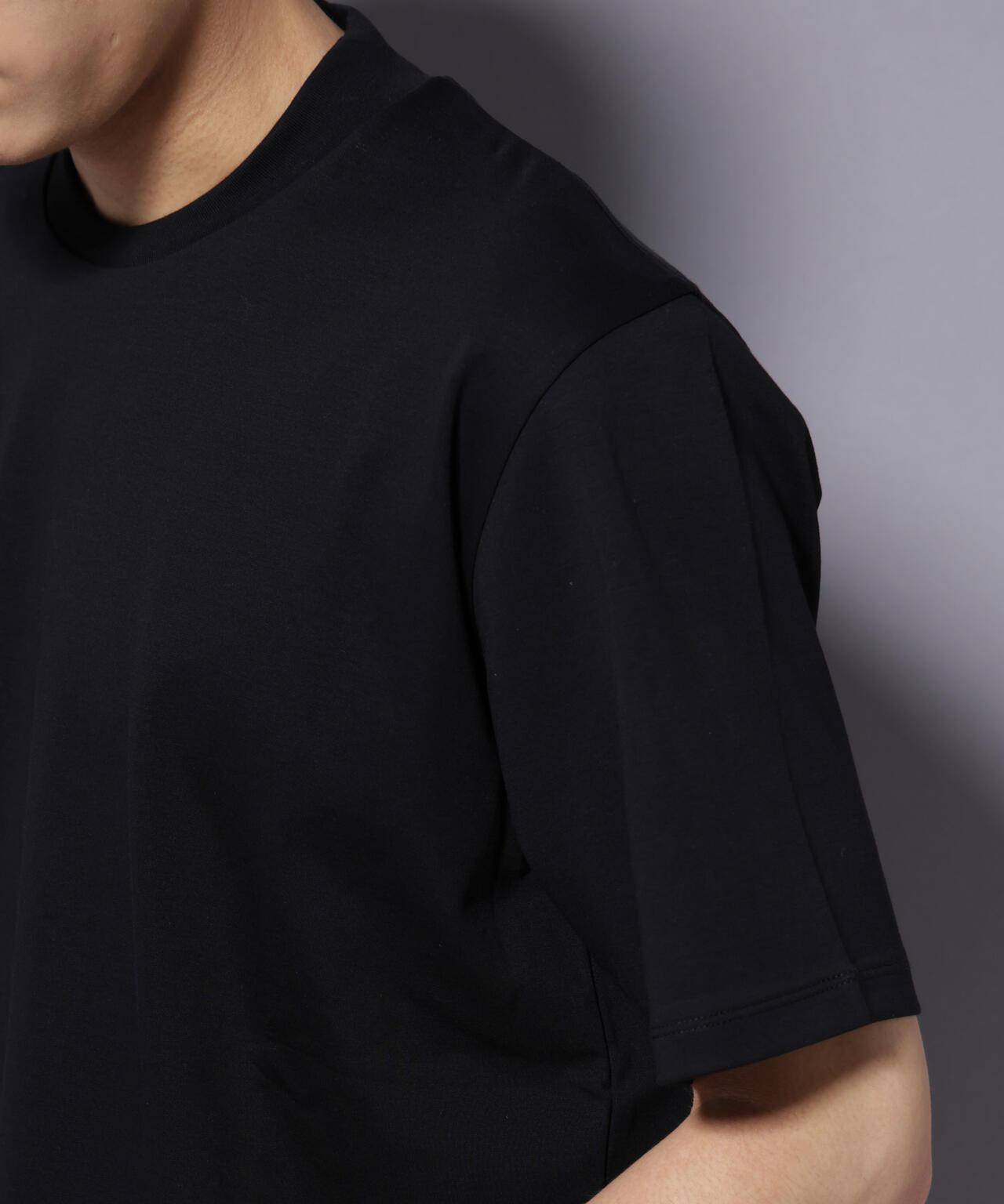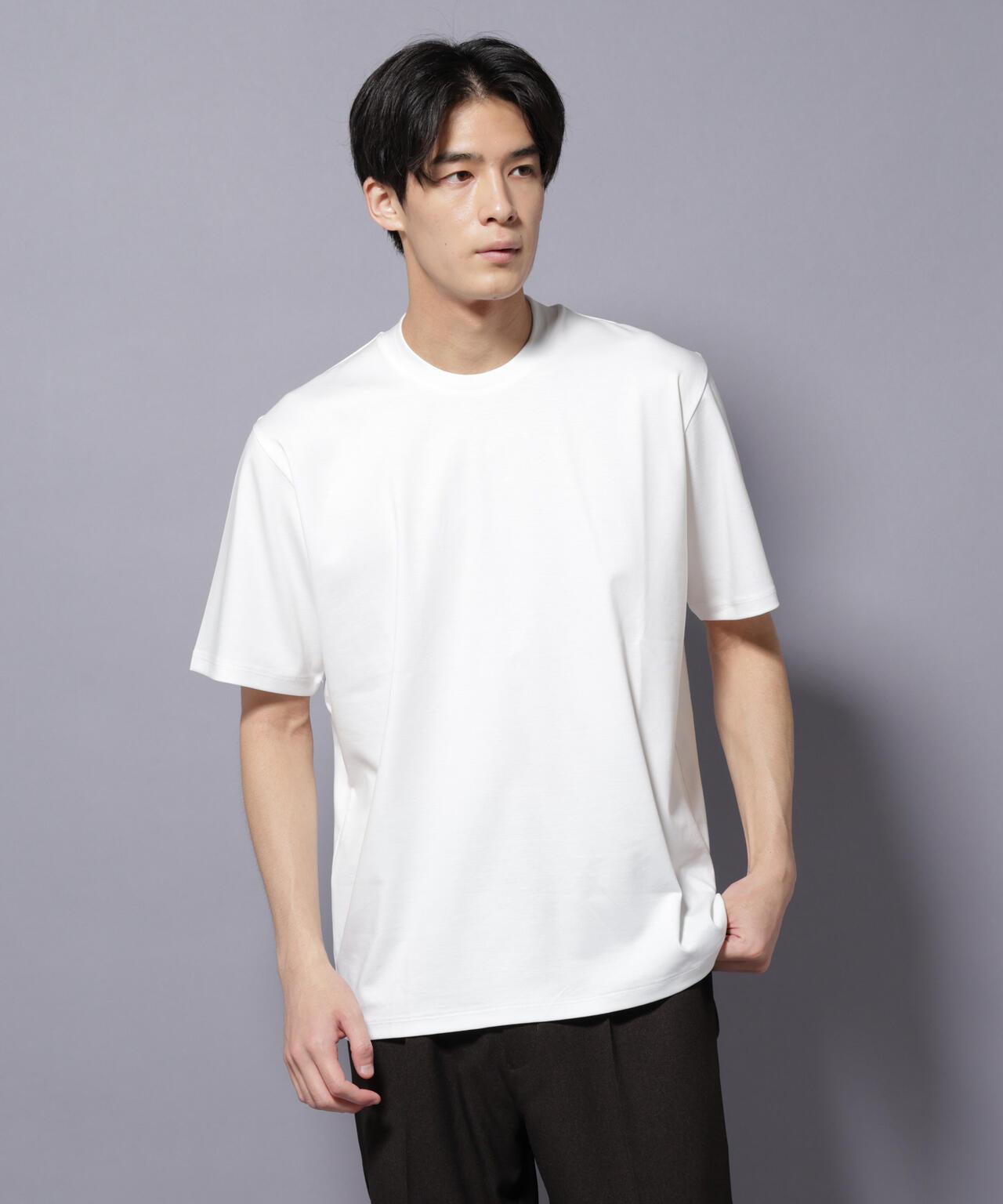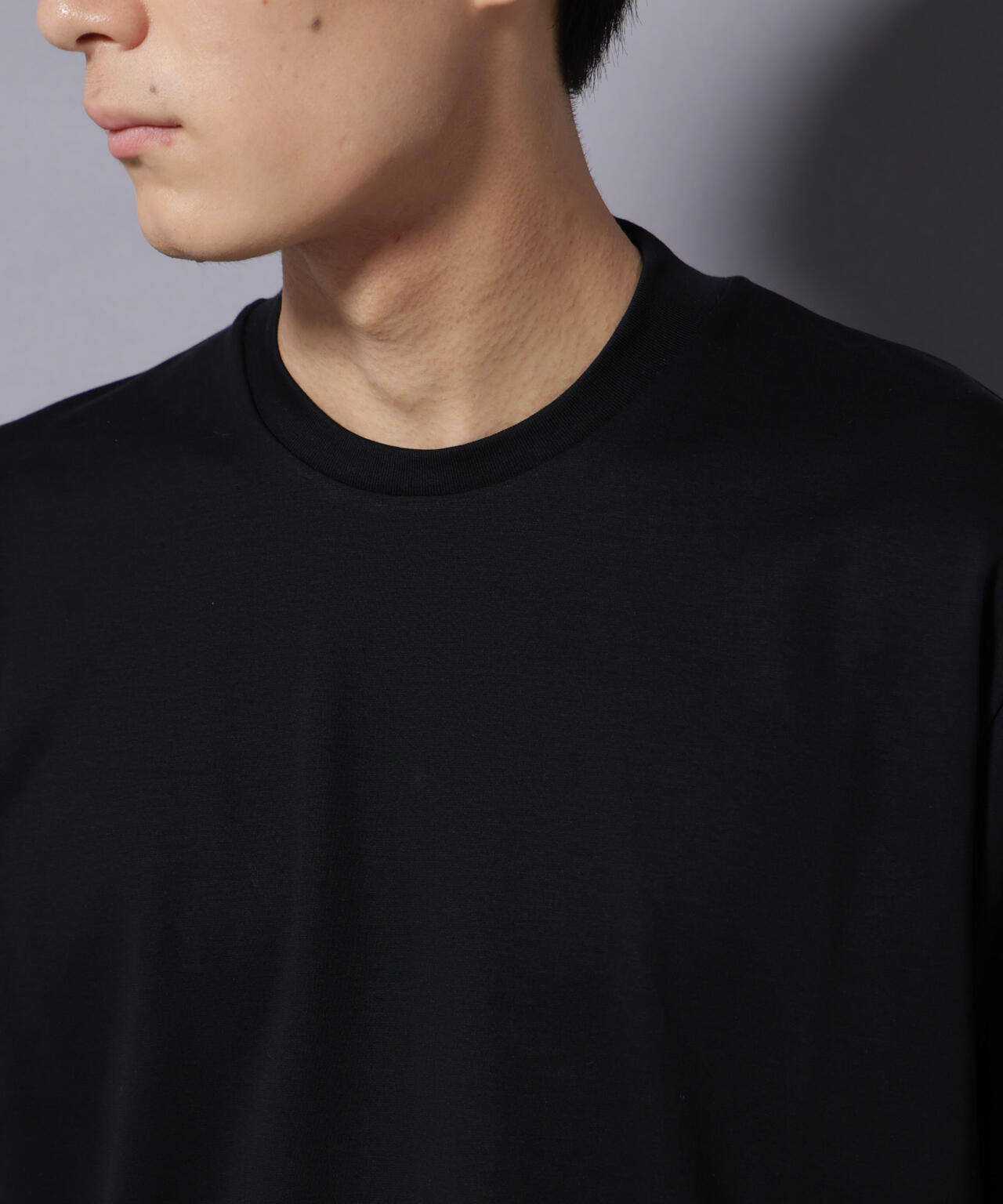 ビジネススタイルにマッチしたジャケット専用Tシャツ。クルーネックの後襟にかけてリブを高くしており、首の後ろに触れるジャケットの襟裏に皮脂汚れが付きにくい絶妙なネックバランスに仕上げた1着。