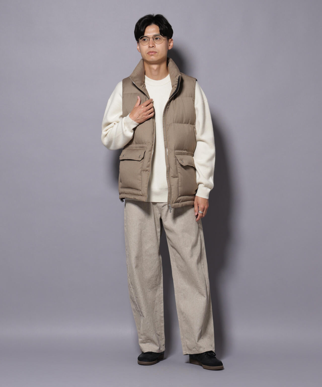 ・クリーンなキレイニットと合わせたナノユニバースらしい着こなしがおすすめ