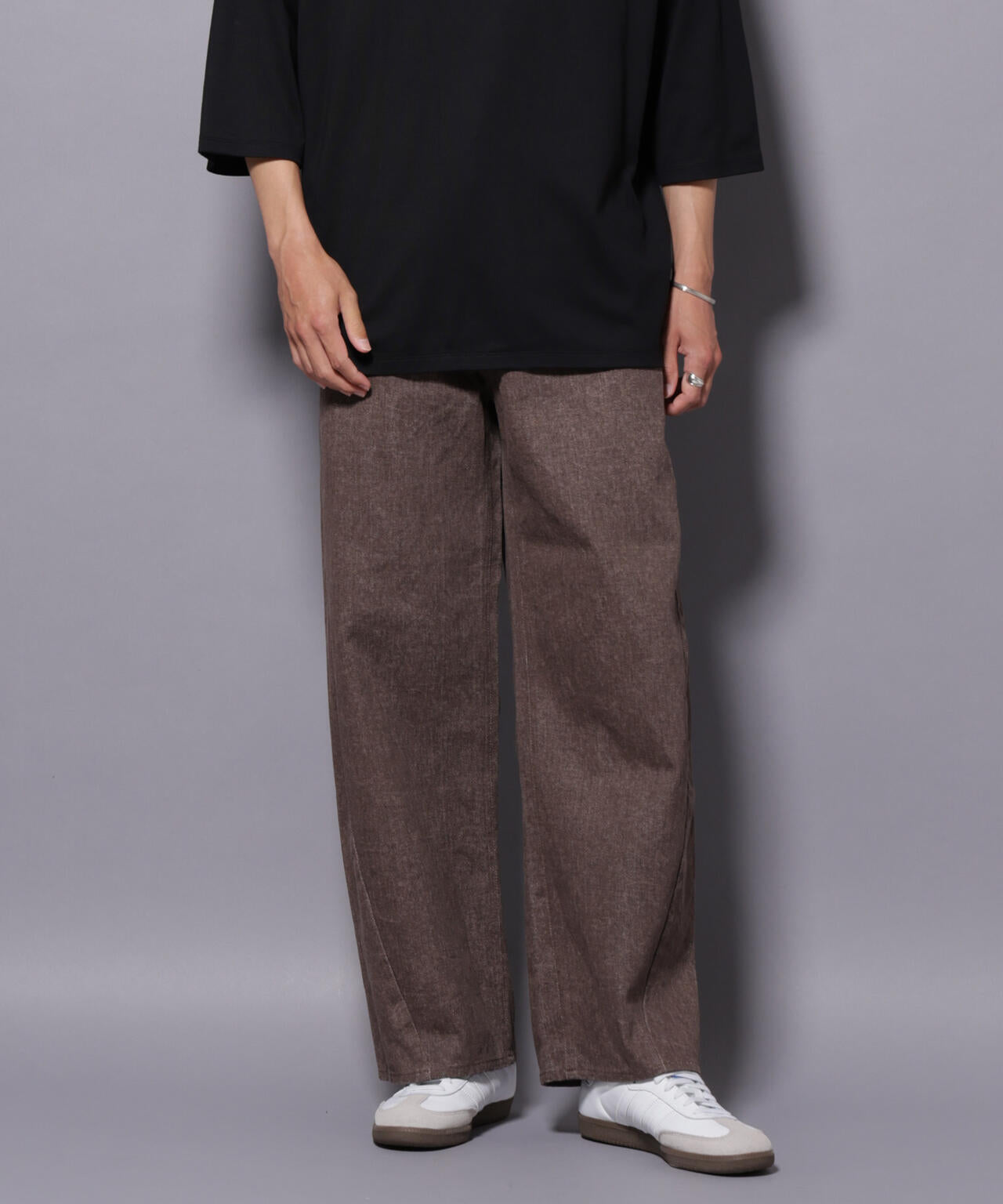 トレンド感のある加工系とバレルレッグを掛け合わせた3Dパンツ