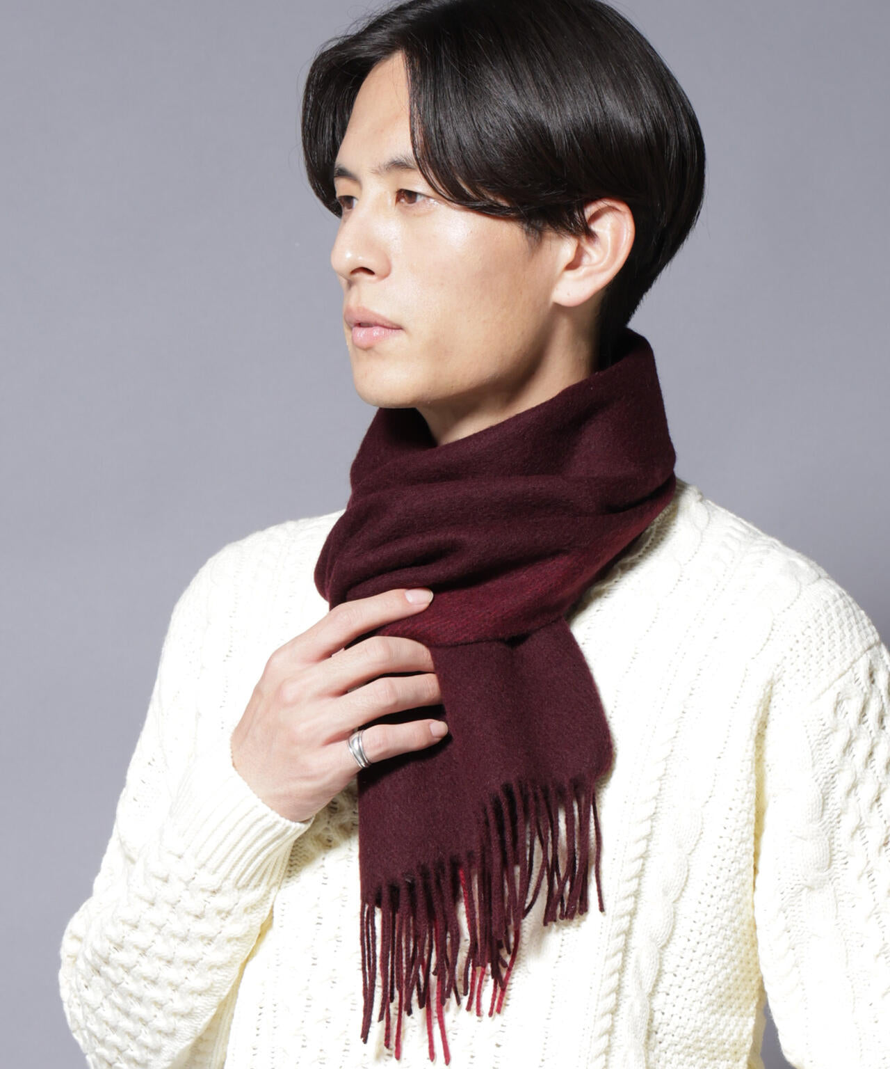 なめらかな肌触りと軽やかな着け心地を両立したカシミヤブレンド素材を使用したマフラー。保温性に優れながらもチクチク感がなく、首元を優しく包み込んでくれます。冬のギフトにもおすすめの実用性と高級感を兼ね備えたマフラーです。