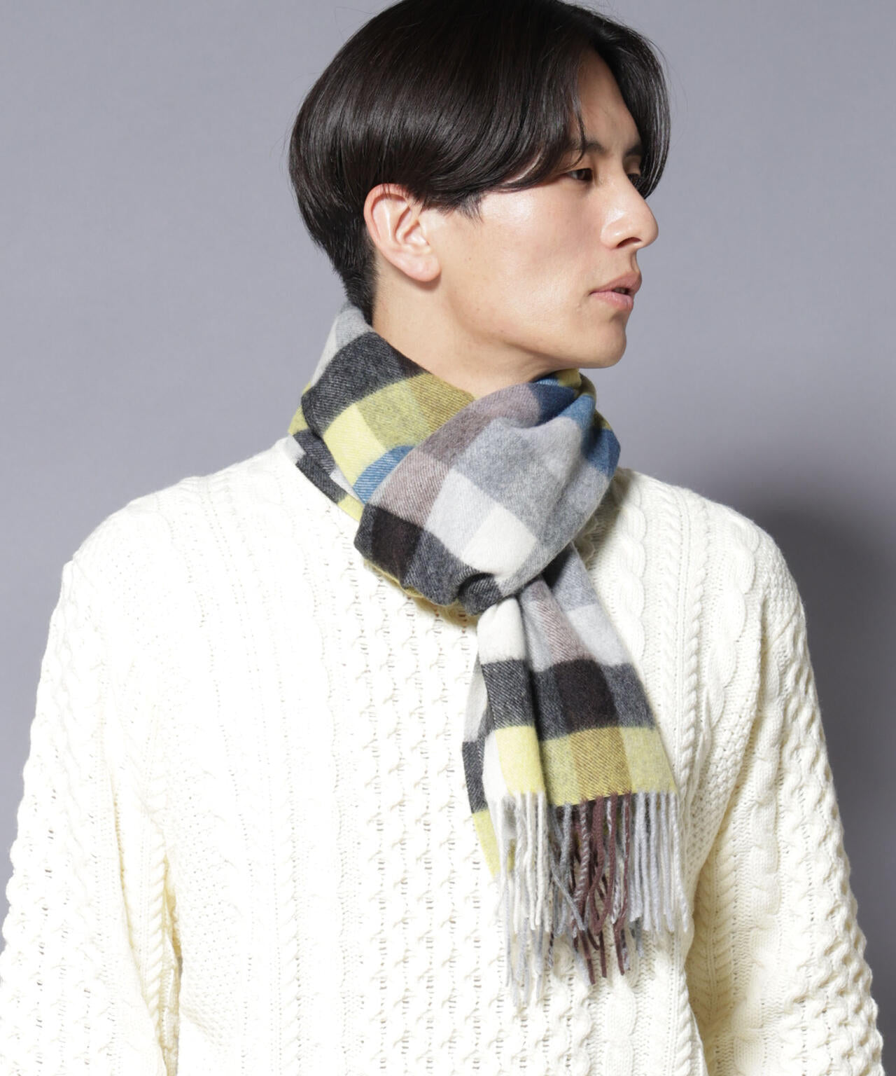 質なカシミヤをブレンドした、なめらかな肌触りが魅力のマフラー