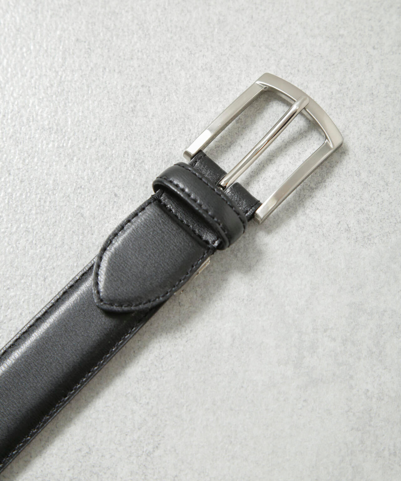 ソリッドなシンプルデザインのレザーベルト。ビジネスシーンから休日のキレイめコーデまで、スタイルを選ばず幅広く使えるアイテムです。