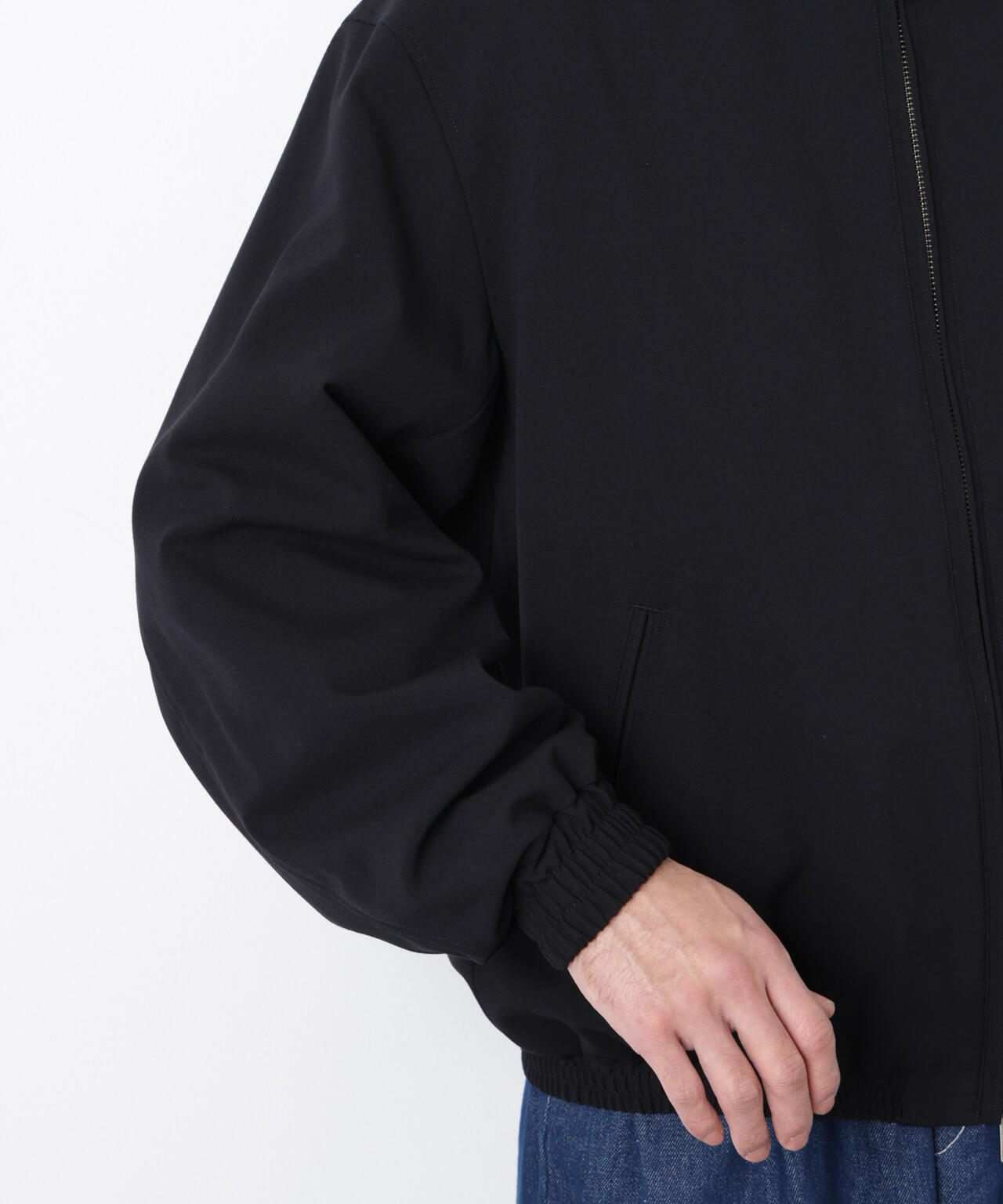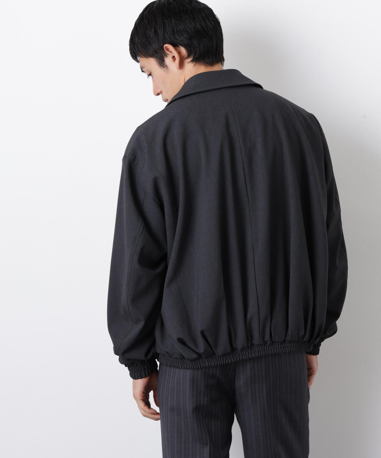 バックスタイルのタックとギャザーのアクセントが効いたTR素材のブルゾン。フロントはオーセンティックでシンプルなデザインなので、着回しが効く万能アイテムです。