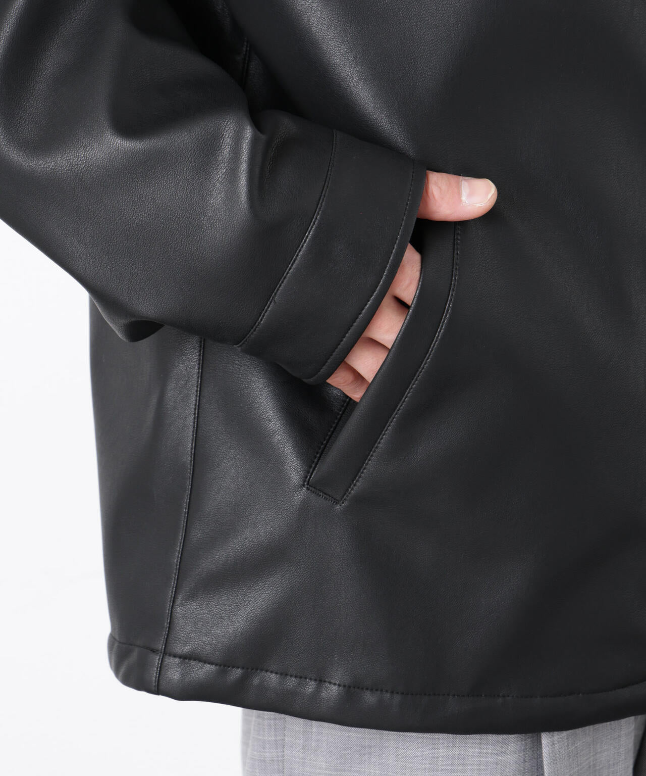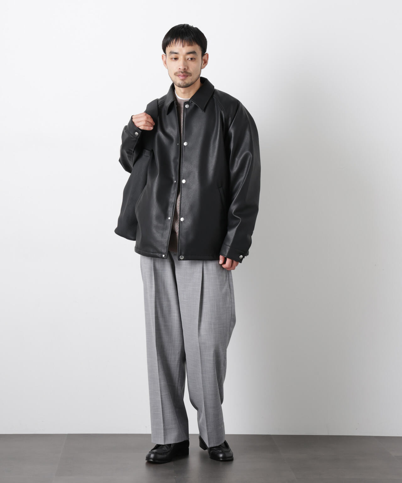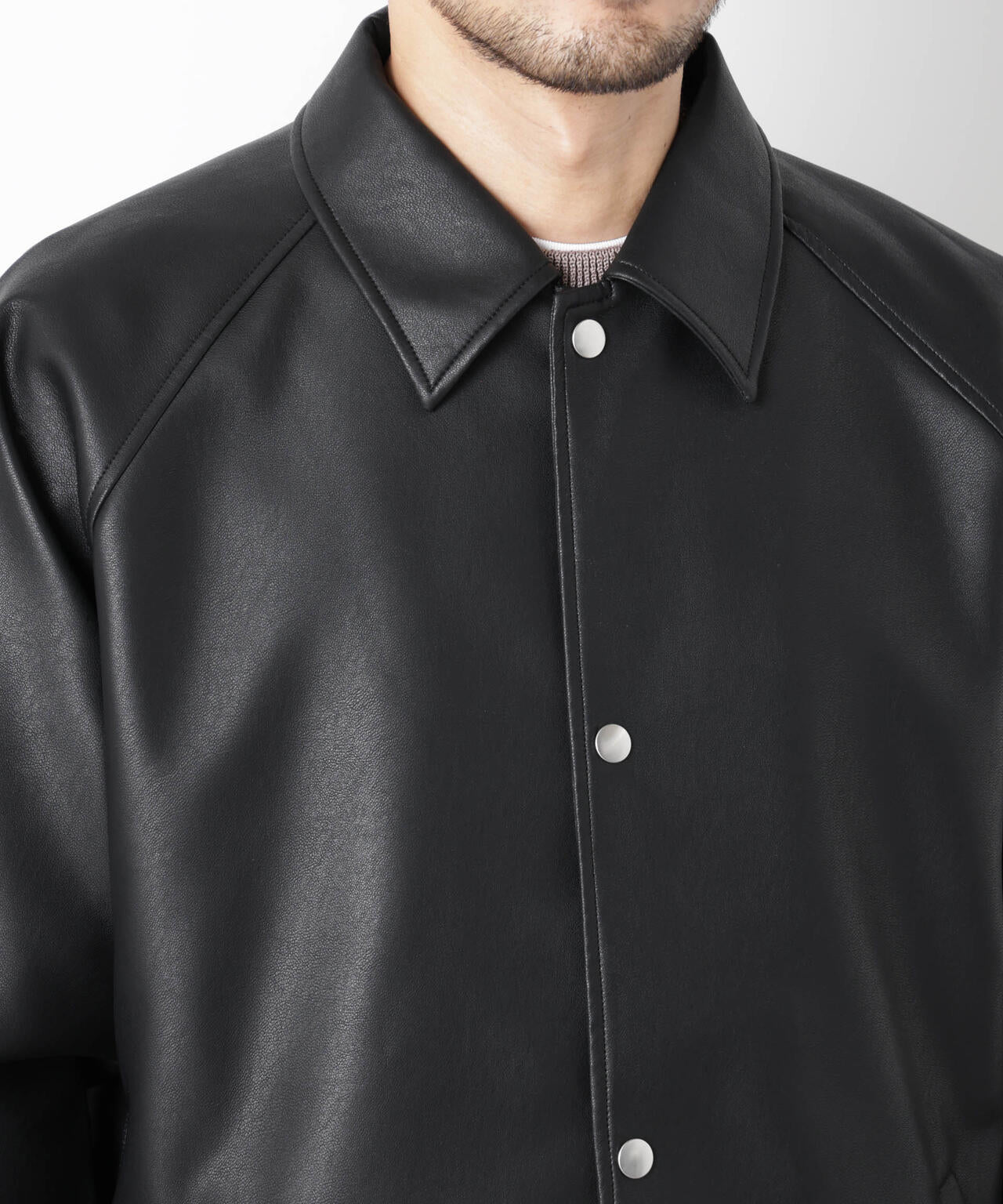 フェイクレザーを使用したシンプルなコーチジャケット。カジュアルながらも品のある、年齢問わず取り入れやすい一着です。