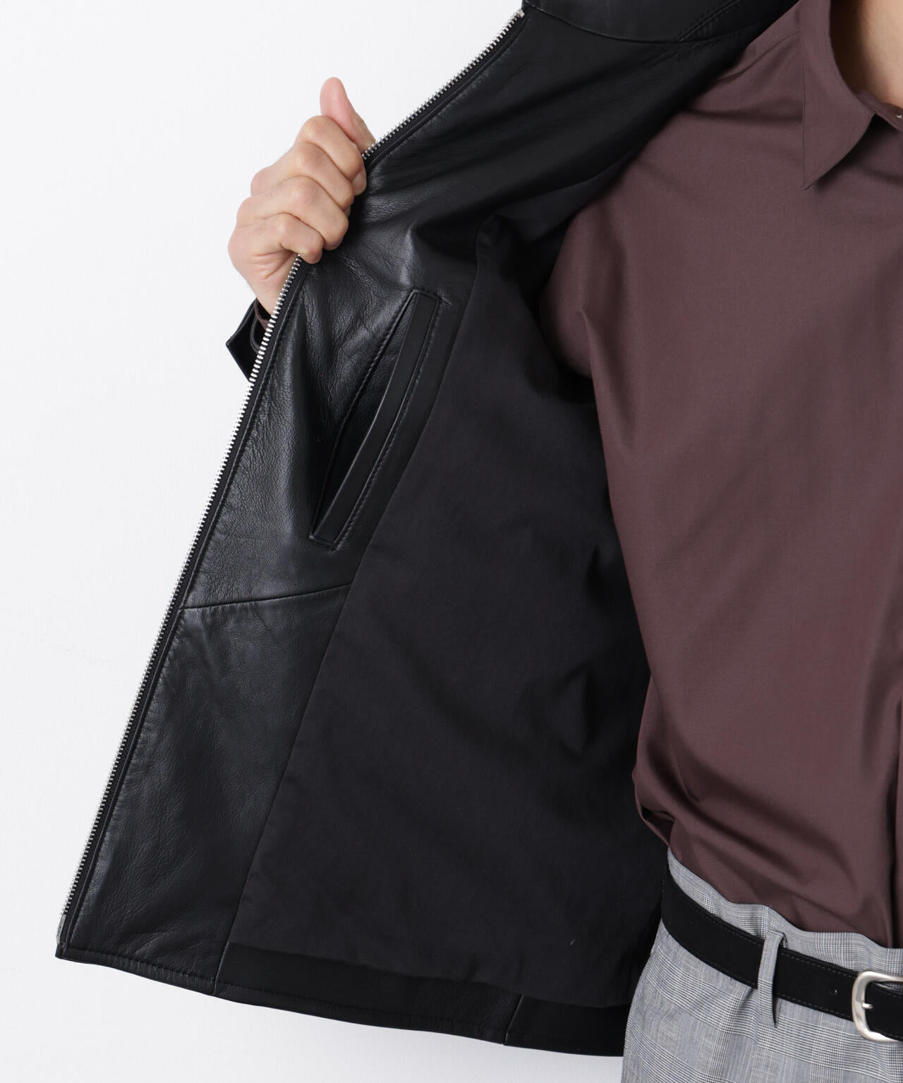胸のファスナーが大人のレザースタイルを実現させる、トラッカータイプのシングルライダース。季節の変わり目に役立つ着回し力の高いアイテムです。