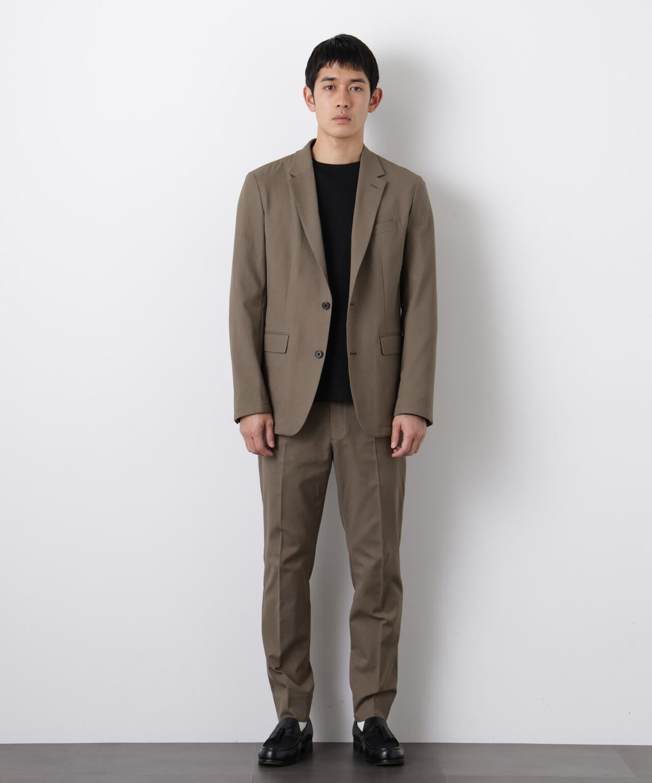 イギリス、アメリカ、イタリアなど様々な国のテーラードスタイルを取り入れ進化してきた日本のスーツの現在進行形。クラシックの基本(ゴージ位置、ラペル幅、ポケット位置、ボタン位置、フロントカットバランスなど)は崩さず、余計な装飾を省きクリーンで現代的、10年着続けられるデザイン、オーセンティックなフィッティングに落とし込んでいる。ゴージ位置、角度、ラペルラインからフロントのカッティングラインがスマートな印象を生み出している。素材はポリエステルをベースとしたNEW STANDARDとなりうる素材。天然素材でなければならないという伝統的な思考ではなく、伝統を踏まえた見え方かつ、未来思考の素材を使用。