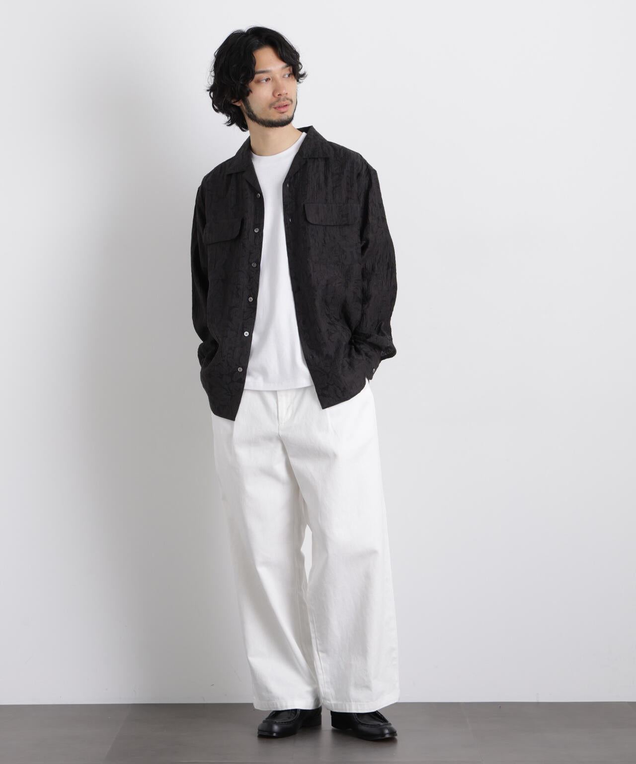 フラワージャガード素材をメンズライクなデザインに昇華したシャツ
