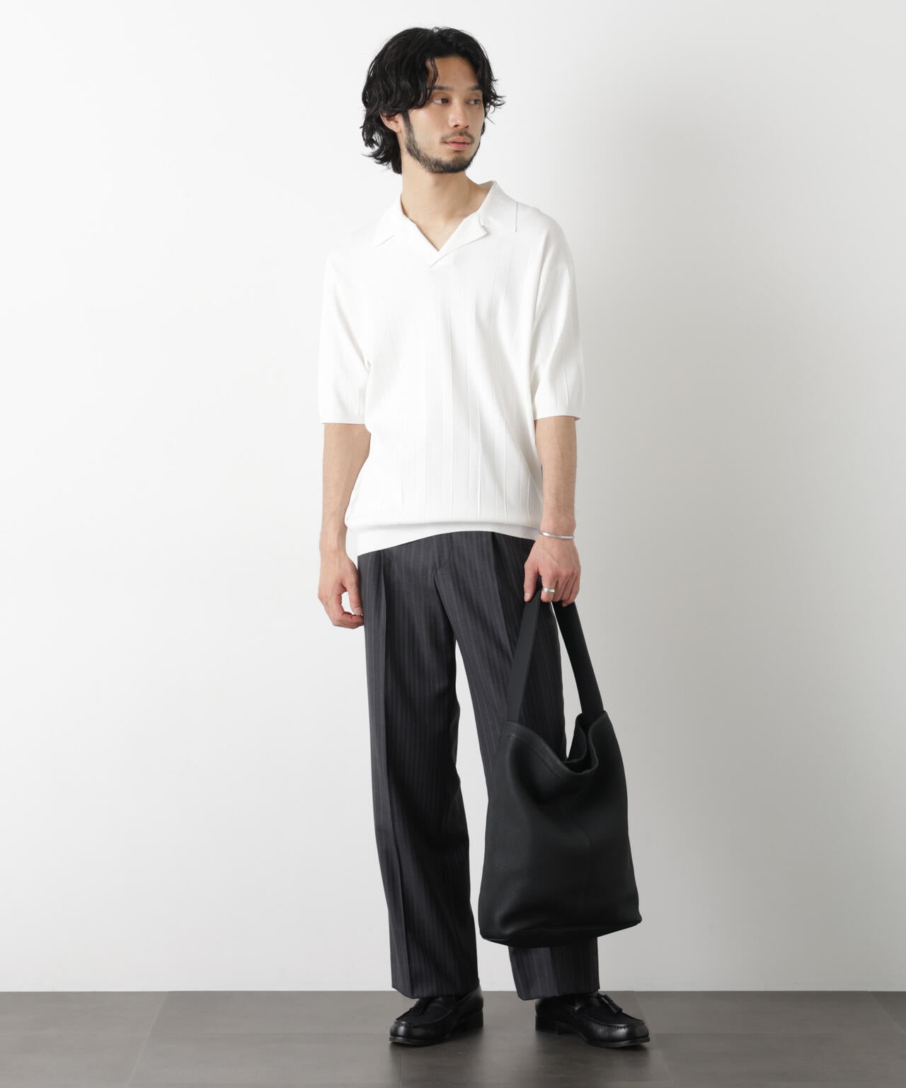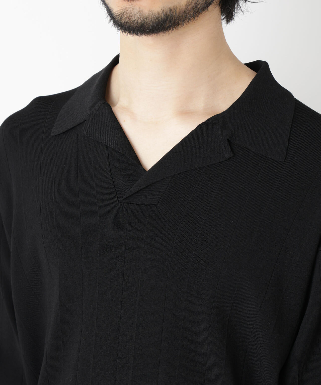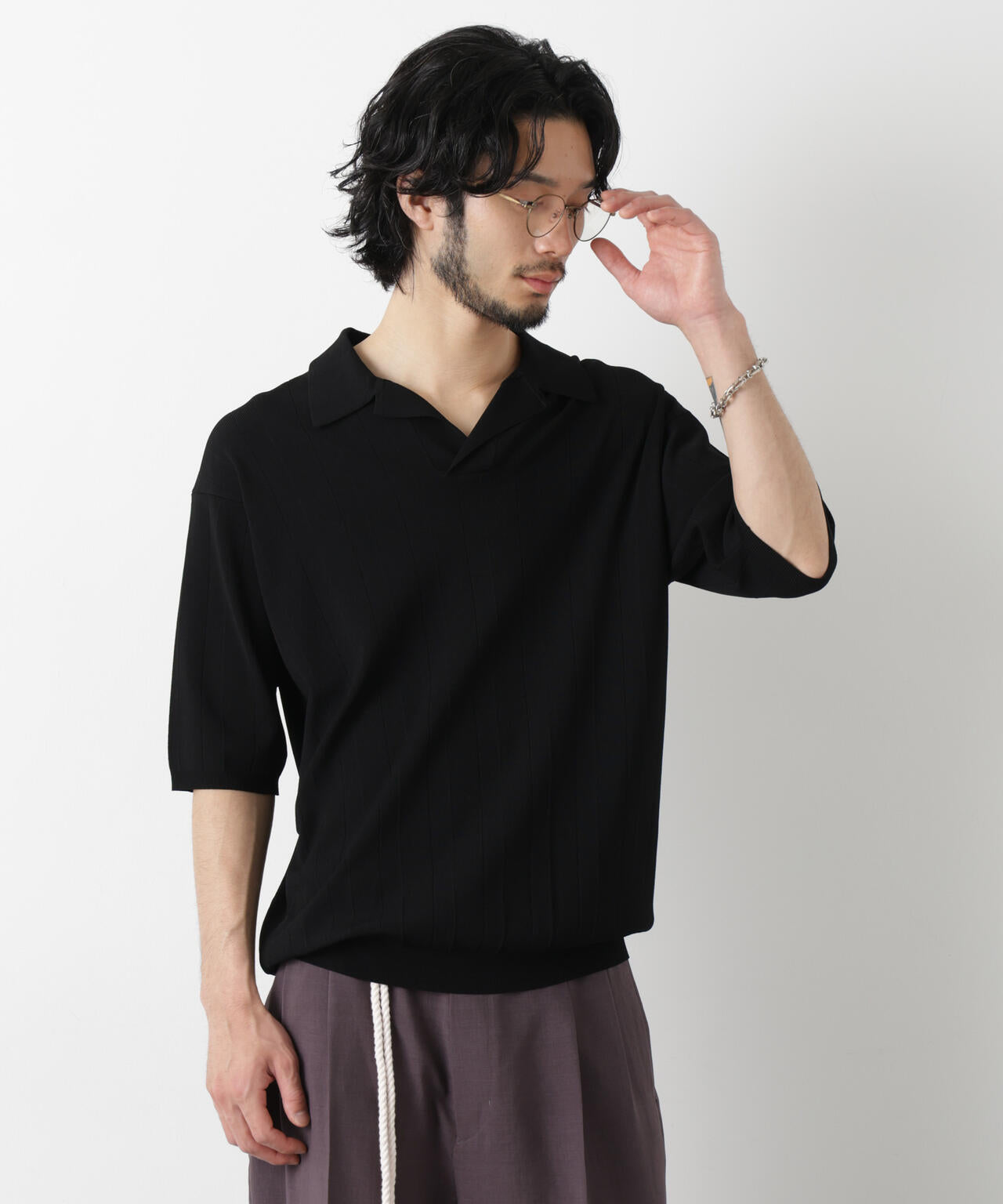 上質な光沢感としなやかさが特徴のスッキッパーポロ。上品な表情のプリーツ編みを取り入れたシンプルな一枚。ジャケットのインナー使いや、一枚着としても存在感のあるアイテムです。