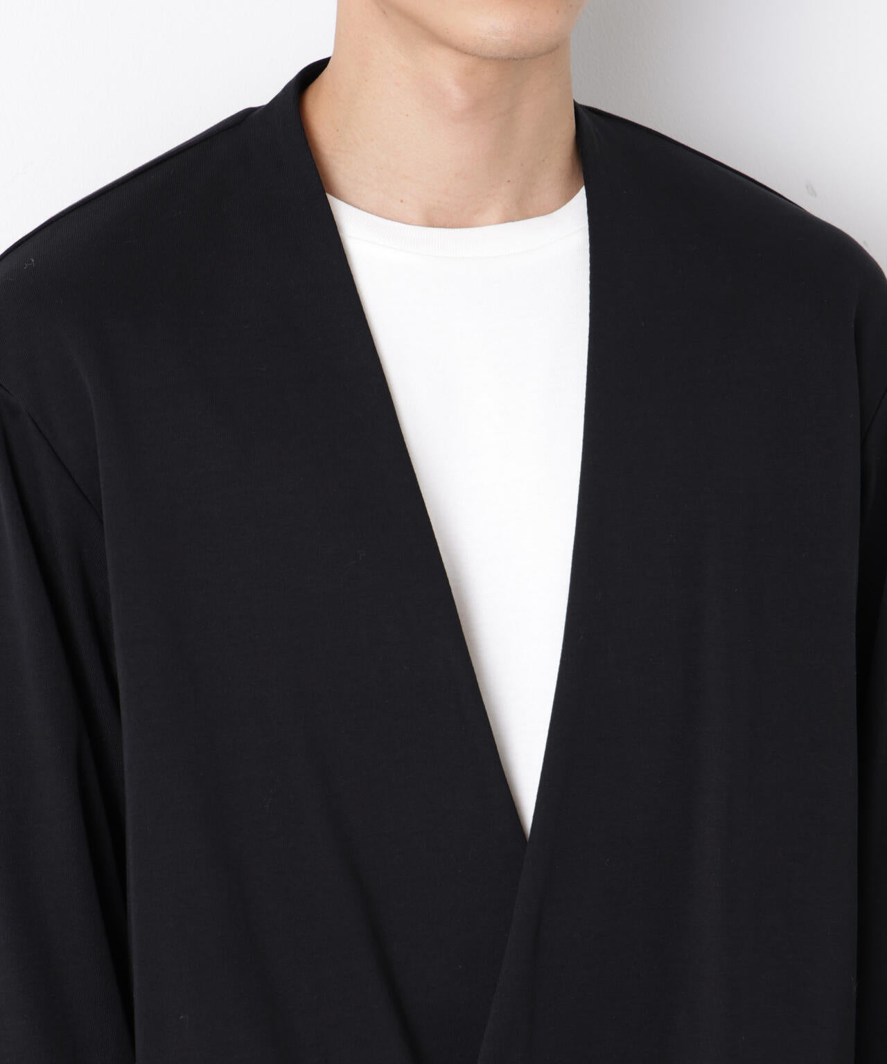 「FORMAL JERSEY」の素材を使用した上品な印象のカーディガン。フロント部分が少しジャケットのように重なり合っているデザインが特徴の1枚。同素材で展開しているカットソーとアンサンブルでの着用もおすすめです。