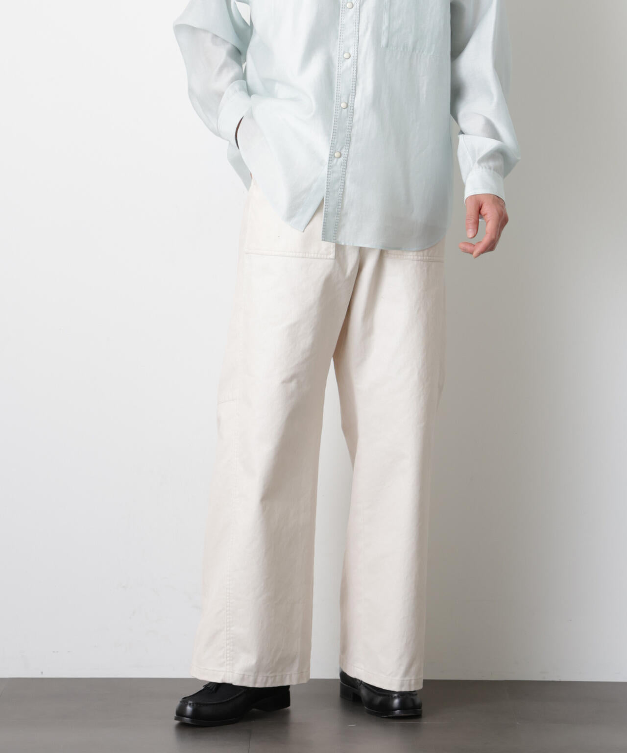 フロッキー加工を施し、ビンテージのような独特のタッチが特徴のベイカーパンツ。穿きこむことで、徐々に加工がはがれエイジングが楽しめるアイテムです。