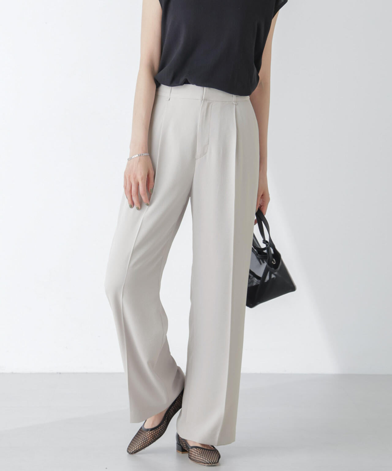 ・春夏コーデの着回しに活躍する機能性シリーズのセミワイドパンツ