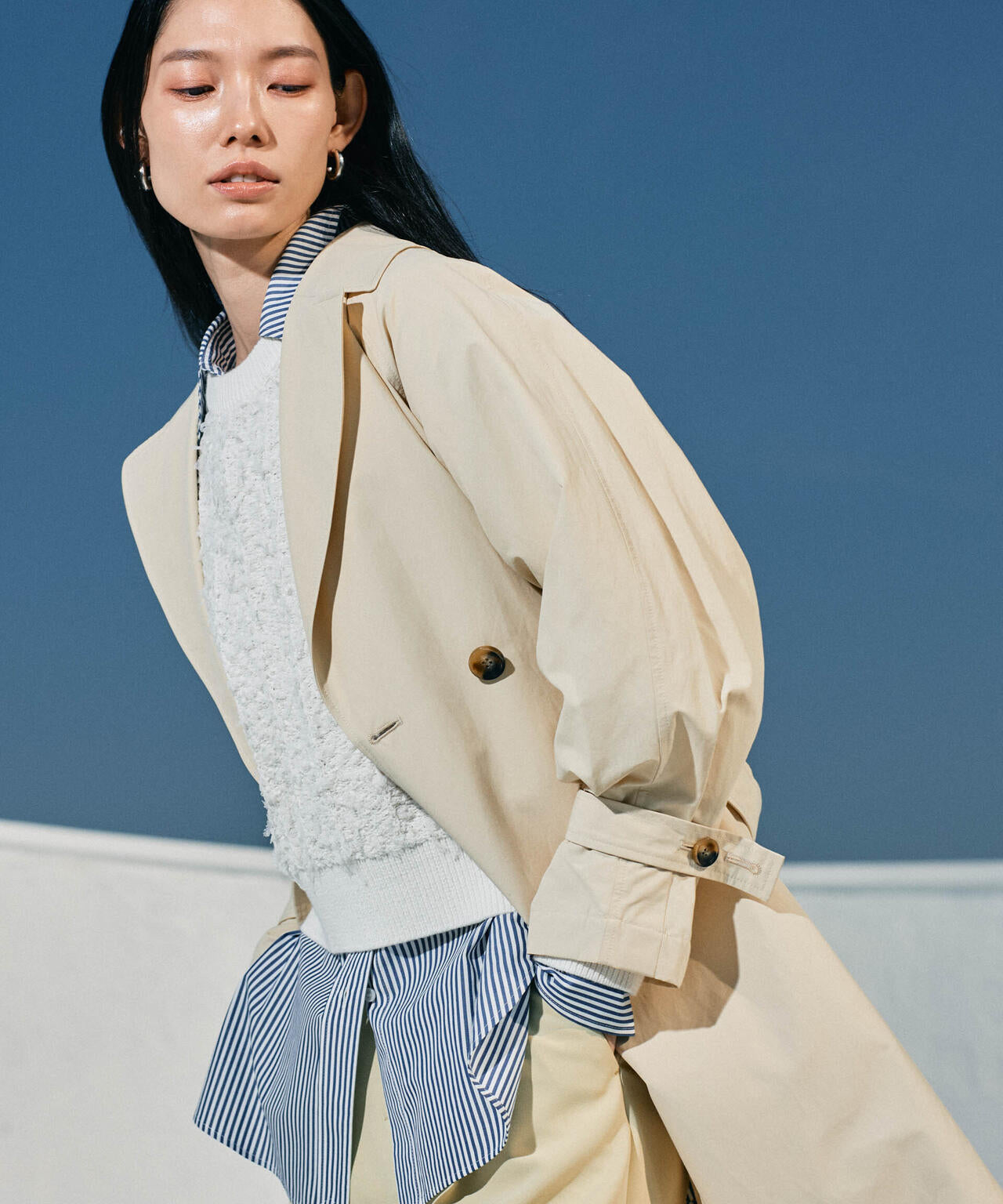 オーバーサイズな身頃でバサッと羽織れるライトトレンチコート