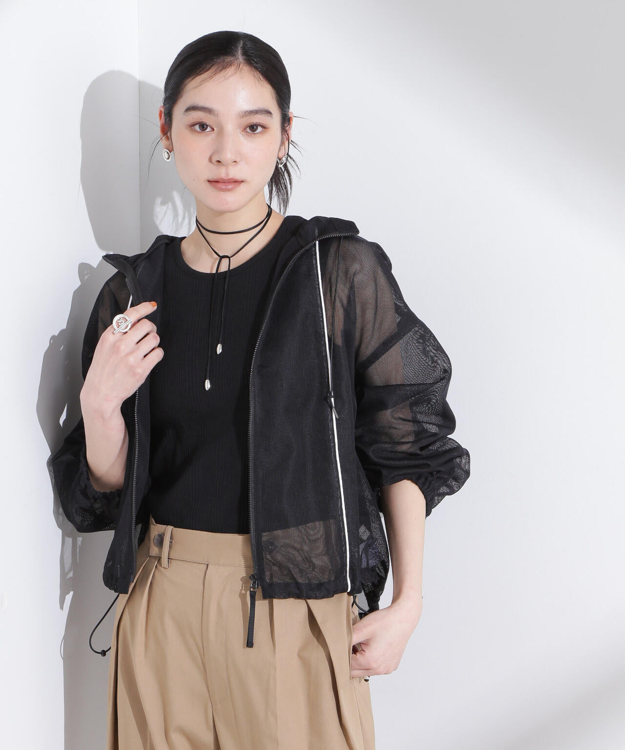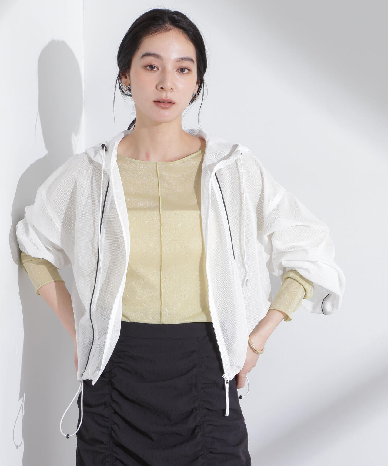 トレンド感のあるシアーをメッシュ生地で表現したライトブルゾン