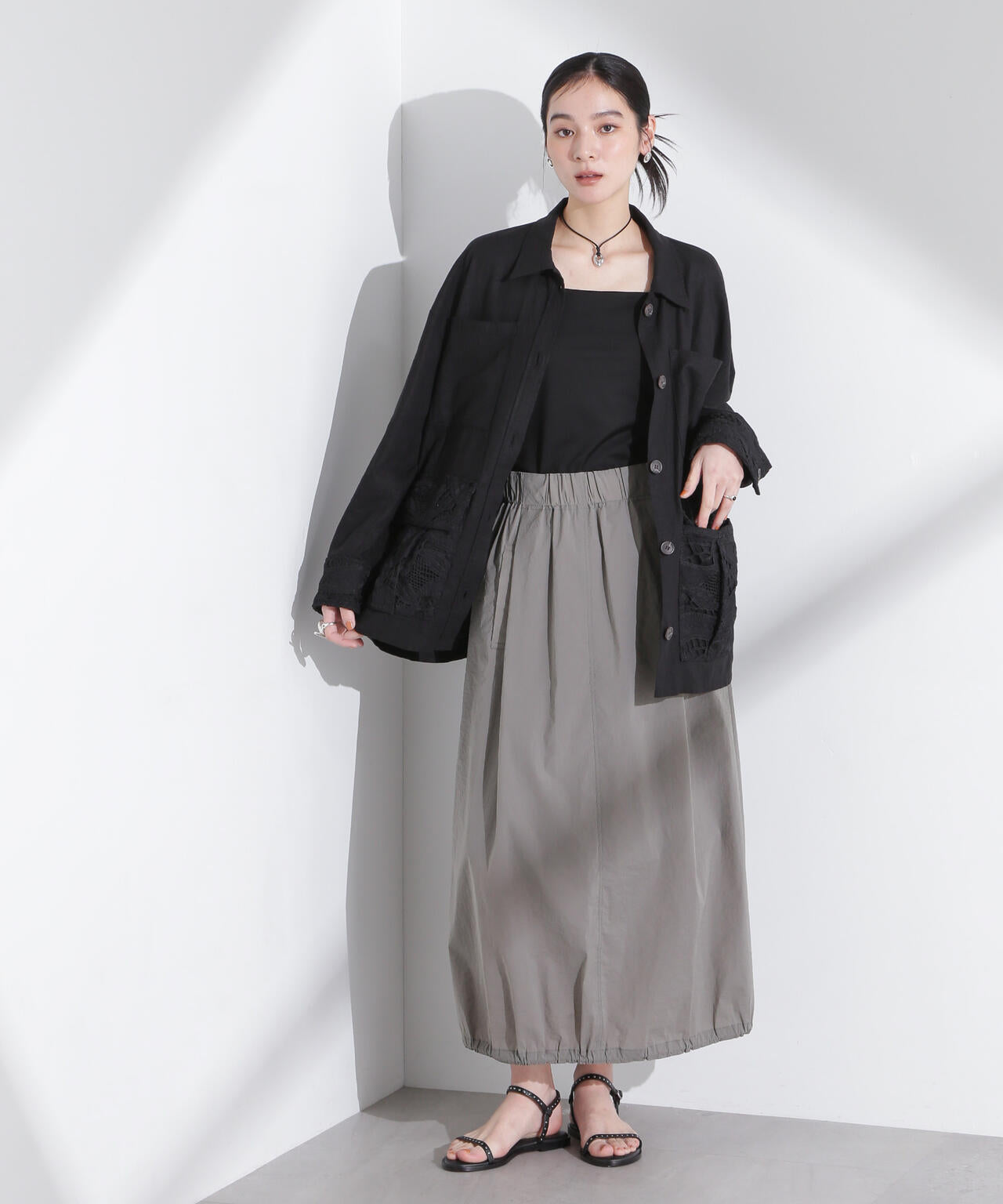 ロングスカートと合わせて女性らしさをプラスしたスタイリングもおすすめ