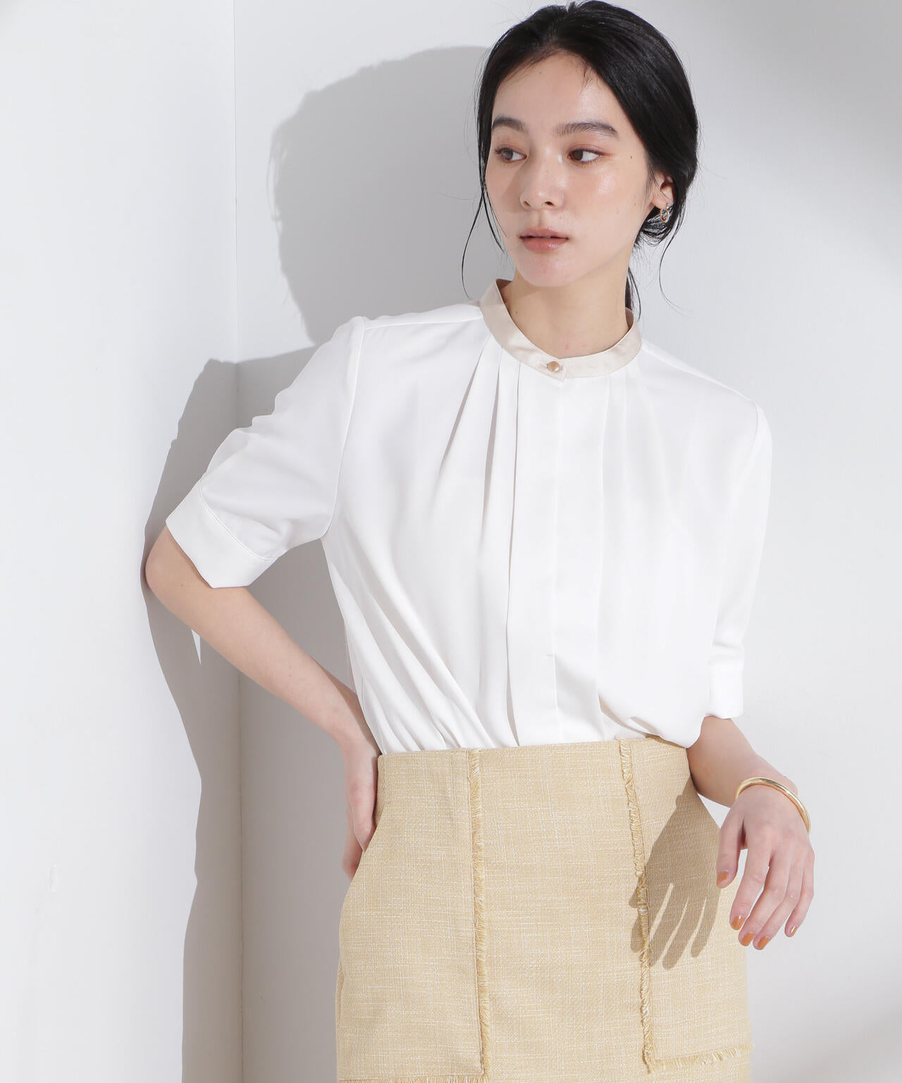 ・オンスタイルに重宝するきれいめデザインの半袖ブラウス