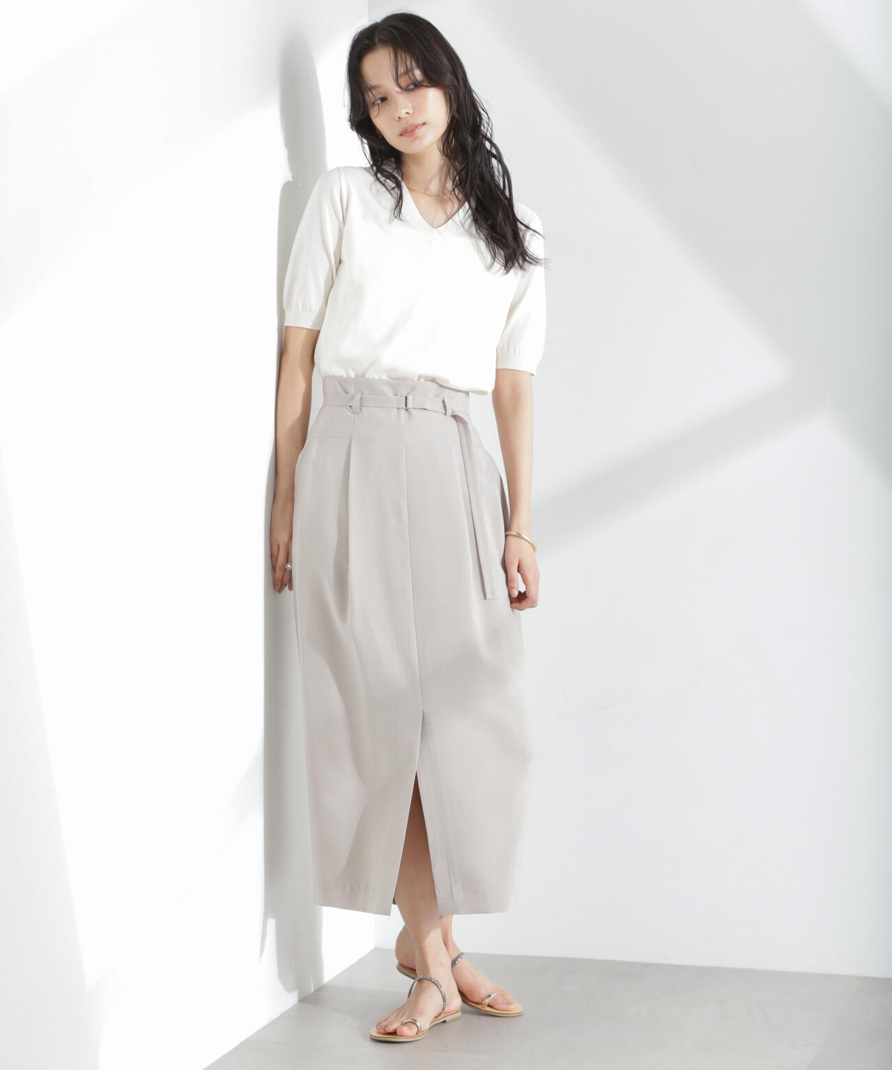 Iラインスカートやハイウエストなスラックスと合わせて着用しています。