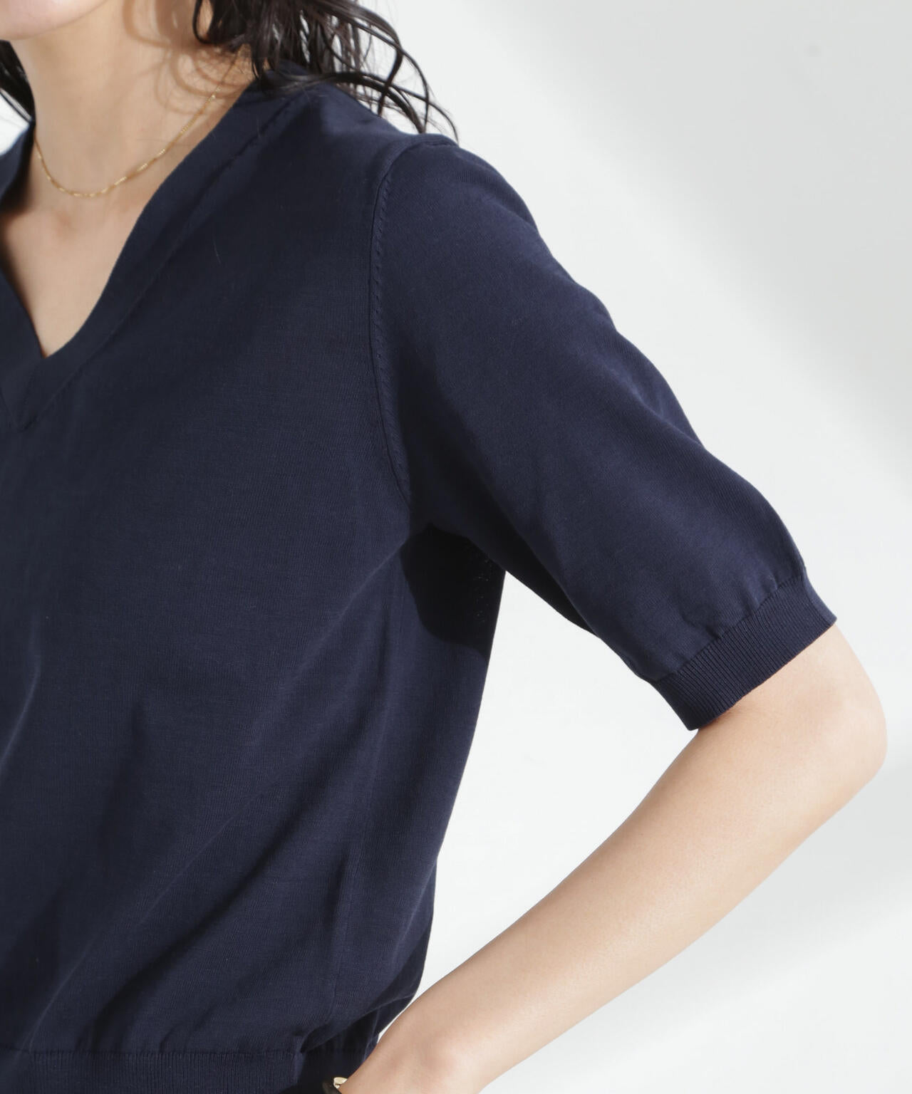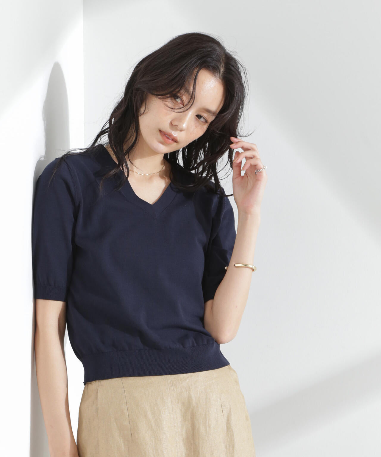 ・サマーニットにぴったりの素材感で仕立てたニットトップス