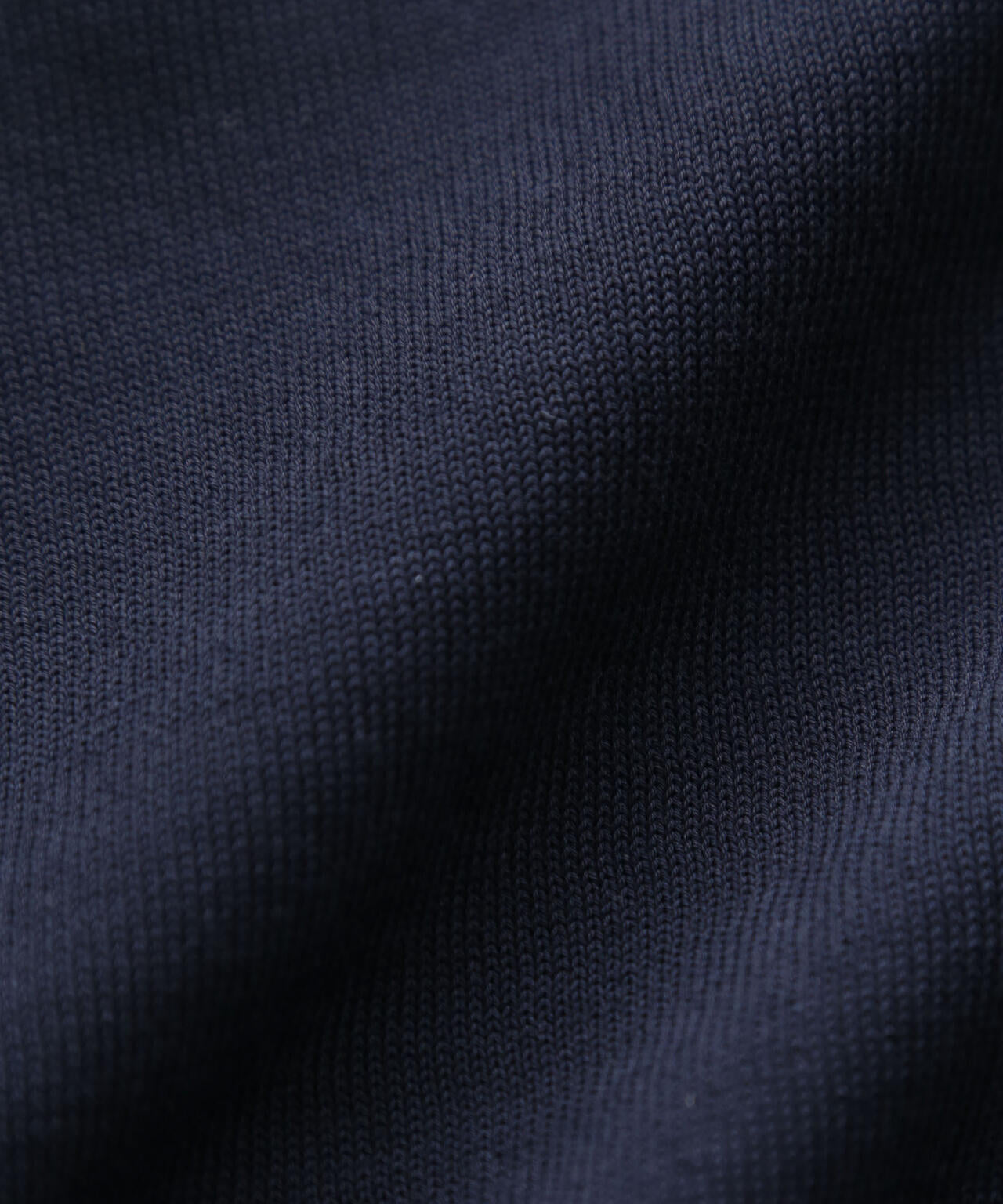 イタリア紡績会社M.T.B社が開発した特殊技術(TEKNICO 加工)にて加工した糸を使用しております。綿の自然な特徴を保ちながらも、涼しくさらっとした風合いの素材です。繊維長が長く光沢感があり、毛羽が少ないことで美しい表面感が特徴です。また、肌に触れるとひんやりと涼感のある、接触冷感の機能をもっています。