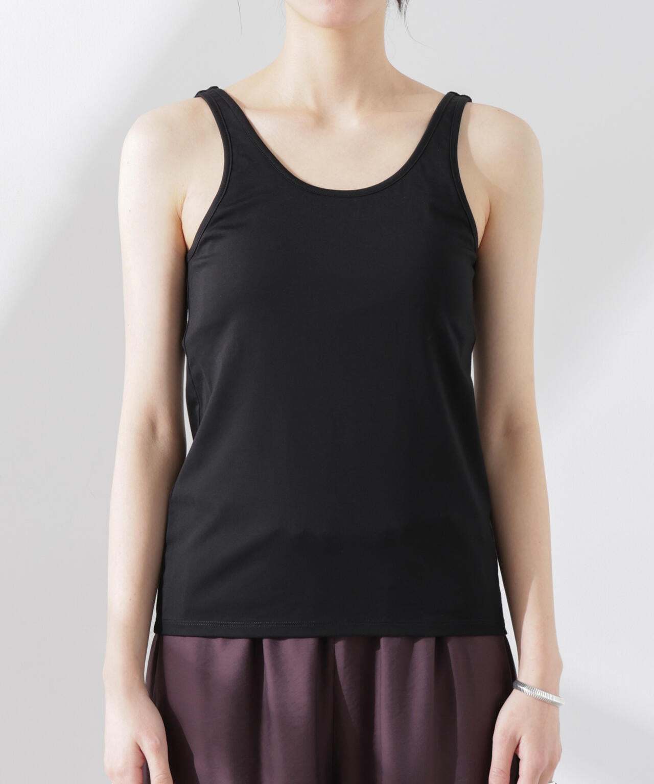 微光沢がキレイめな印象のストレッチポンチ素材のタンクトップ