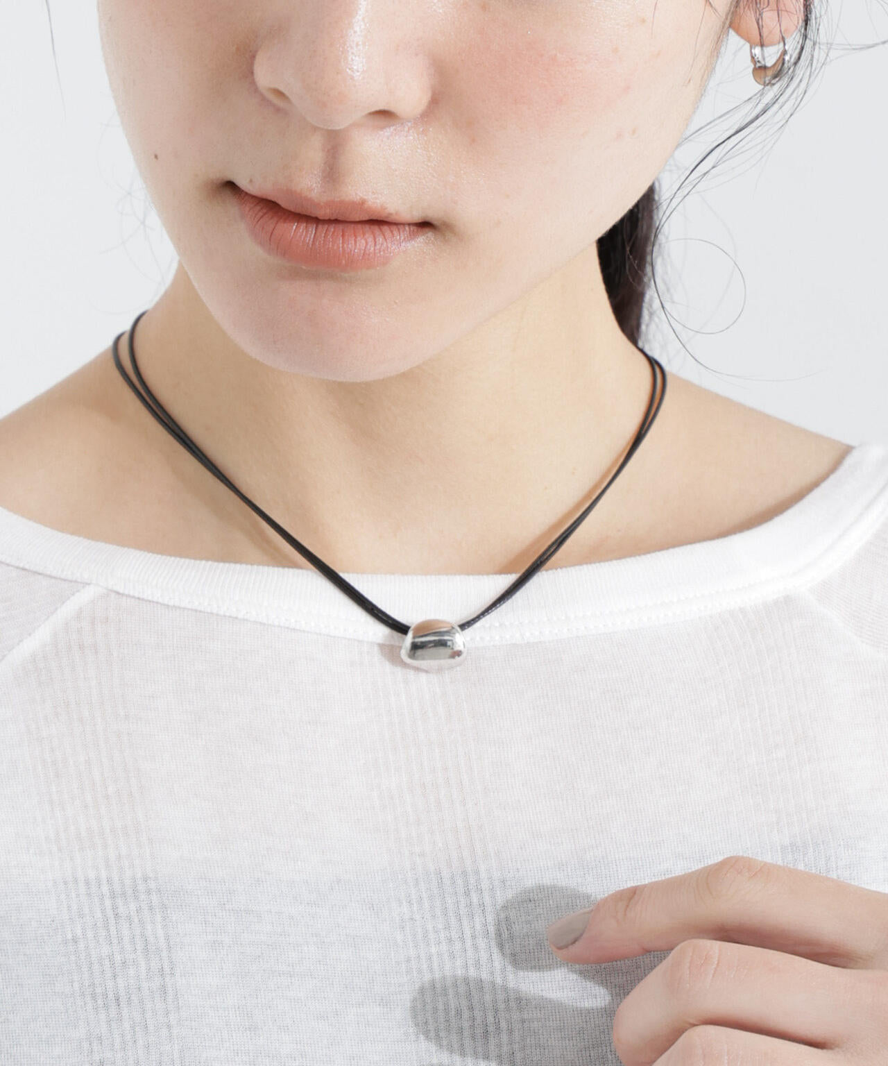 メタルパーツがワンポイントとしてさりげない存在感を放つコードチョーカー。シルバーパーツがブラックコードともコンビが大人っぽい印象に。これからの季節、洋服が薄く軽くなりカジュアルなスタイリングが増えていくからこそ合わせたいアイテムです。
