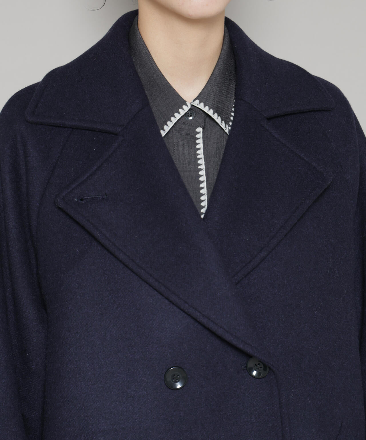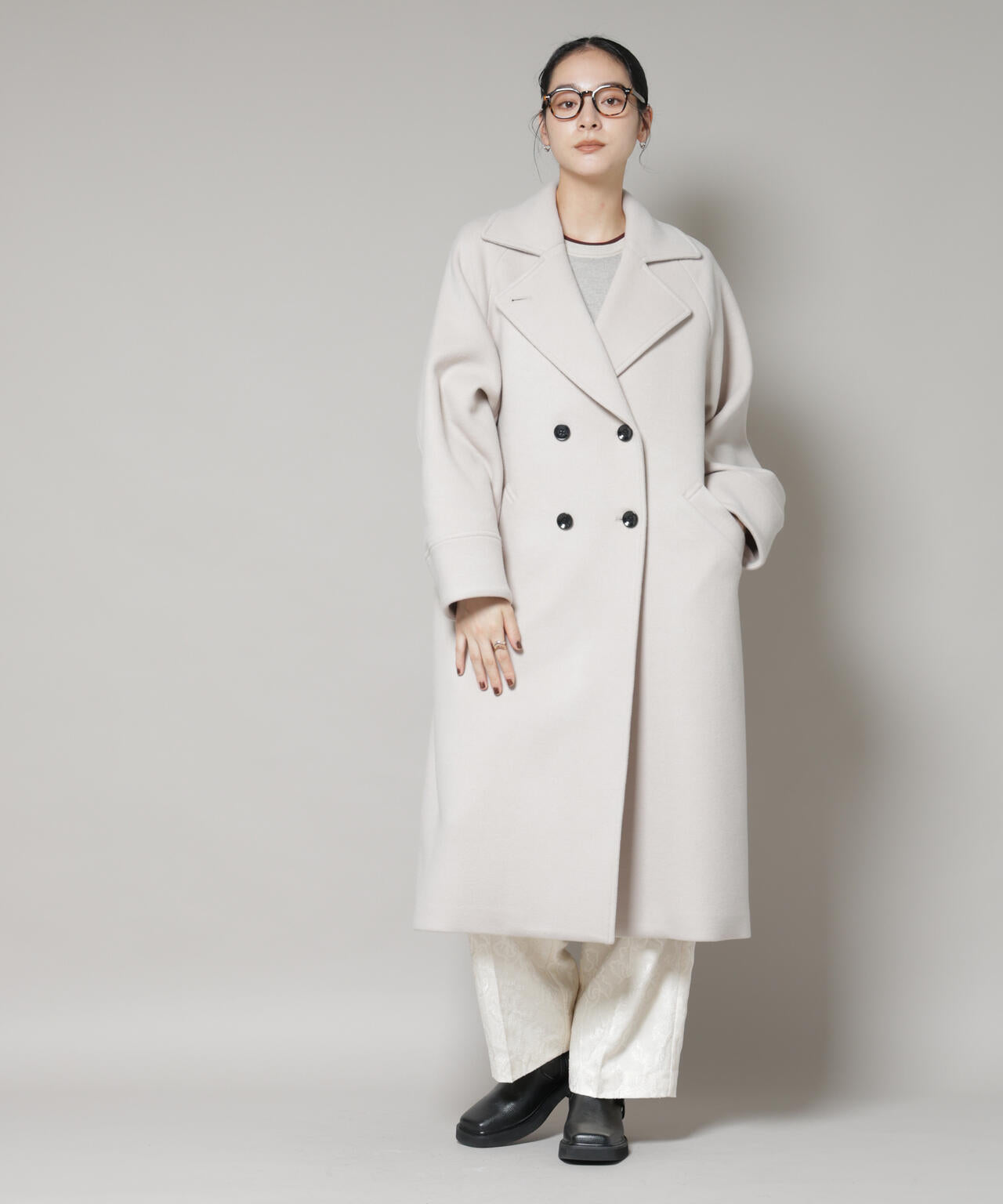 ウールとナイロンを絶妙にブレンドした、存在感あふれるダブルコート。ウールの優れた保温性に加え、ナイロンの軽さと耐久性を兼ね備え、ふっくらとした膨らみと程よいハリ感で、構築的なシルエットを美しくキープ。オンオフでの両用はもちろん、ボトムを選ばず着ていただける万能アウターです。